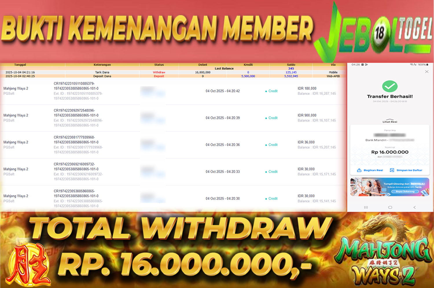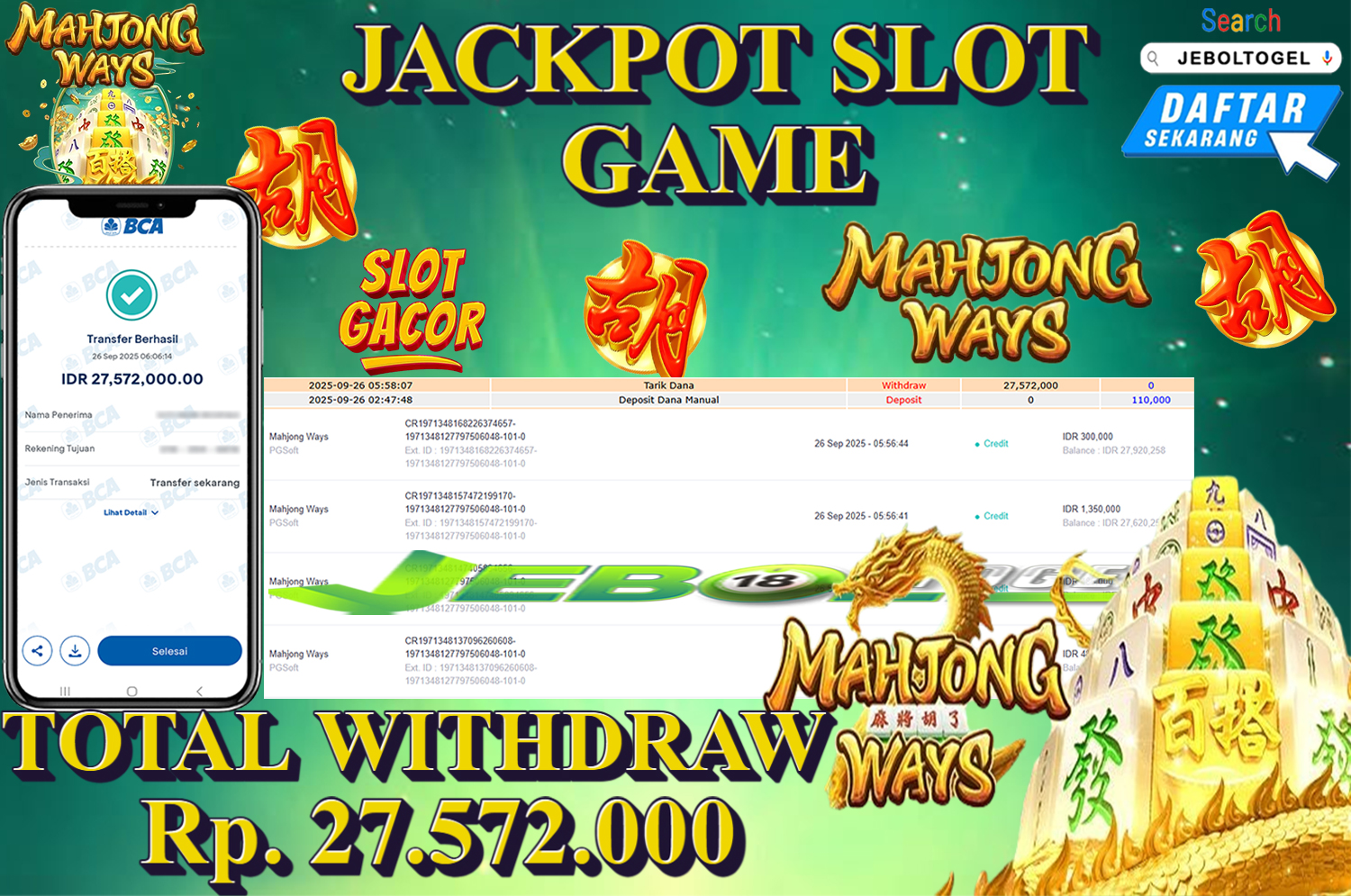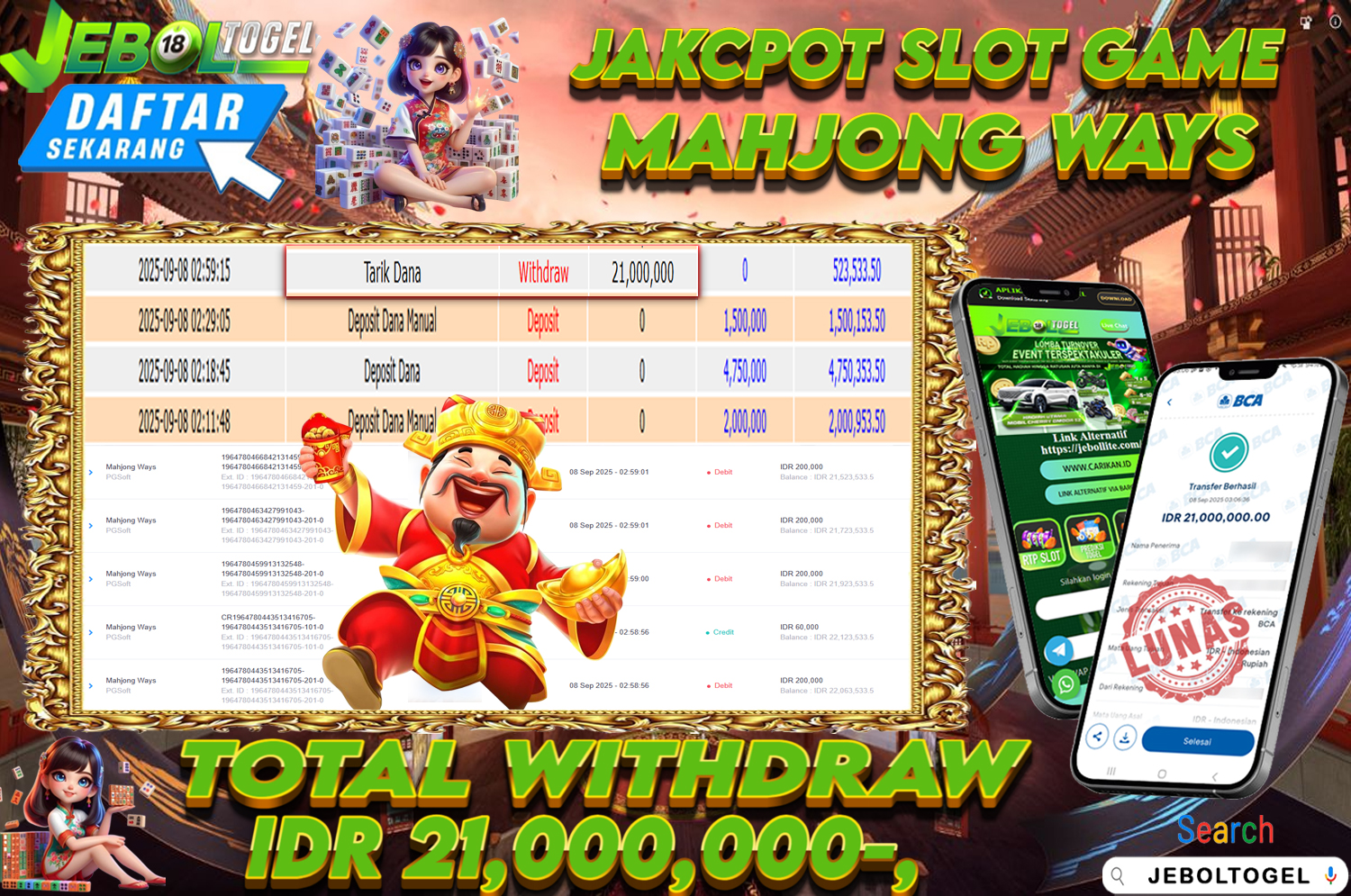 Kemenangan SLOTGAME MAHJONG WAYS 2 ( PG Soft ) Segera bergabung dengan kami JEBOLTOGEL, SITUS TERBESAR dan TERPERCAYA yang pasti BAYAR JP ANDA!