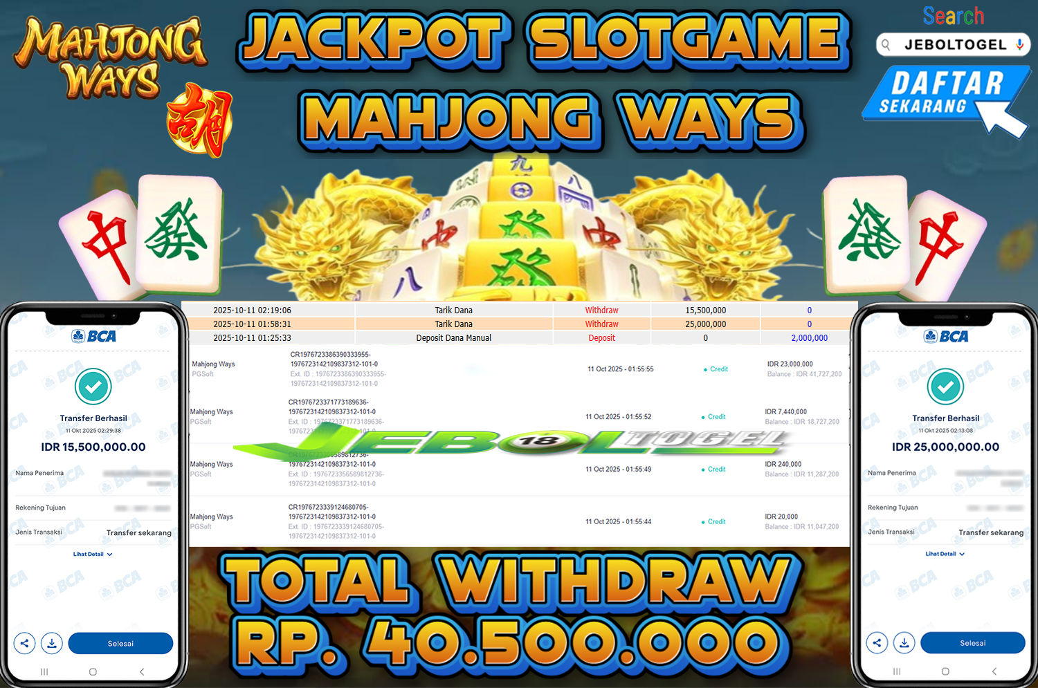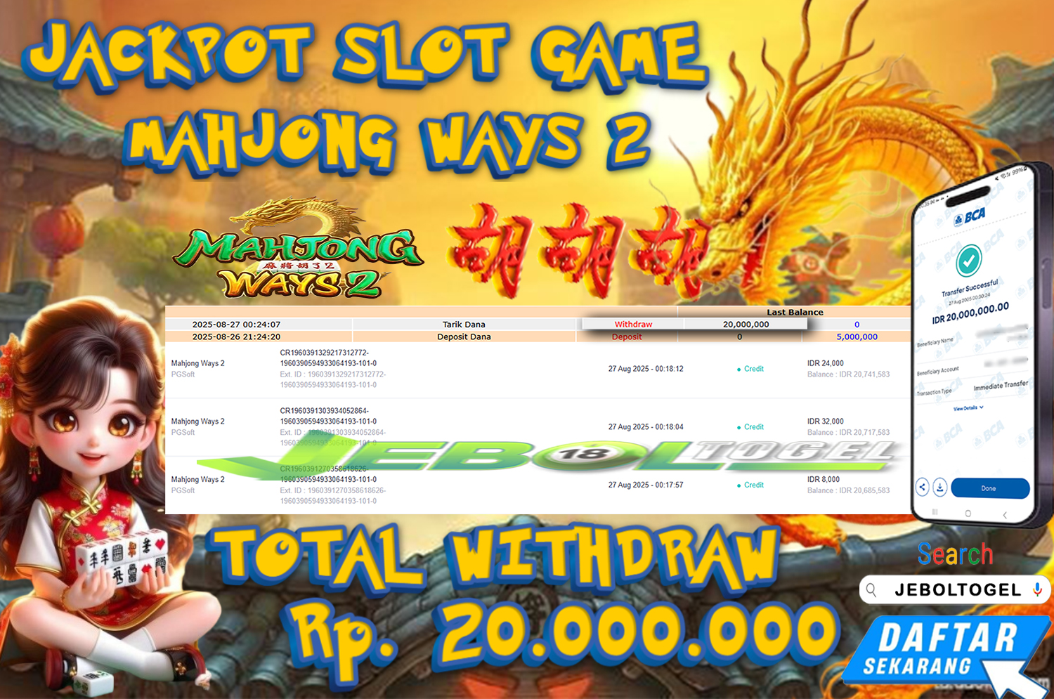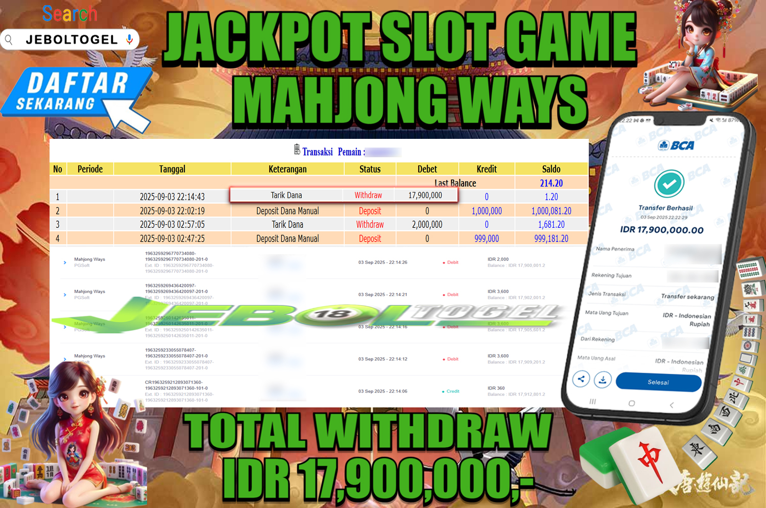 Kemenangan SLOTGAME MAHJONG WAYS 2 ( PG Soft ) Segera bergabung dengan kami JEBOLTOGEL, SITUS TERBESAR dan TERPERCAYA yang pasti BAYAR JP ANDA!