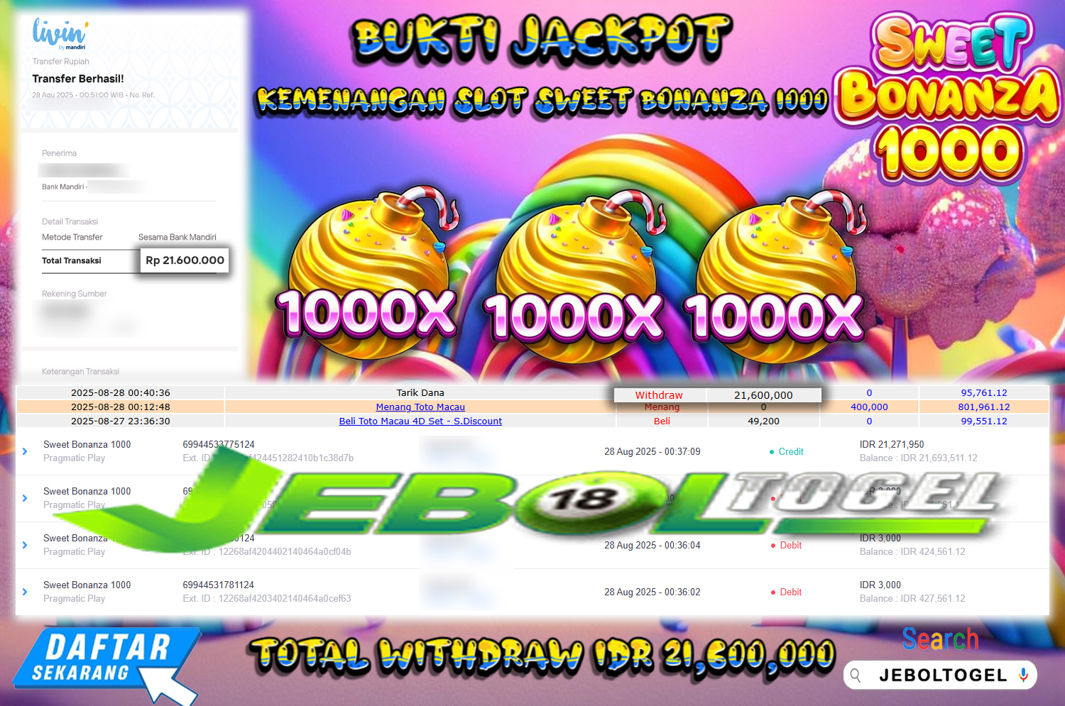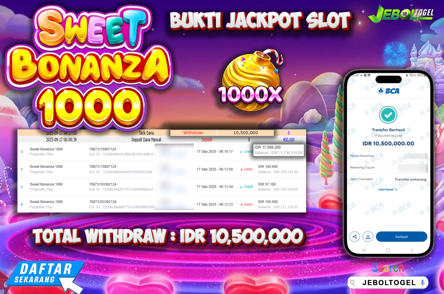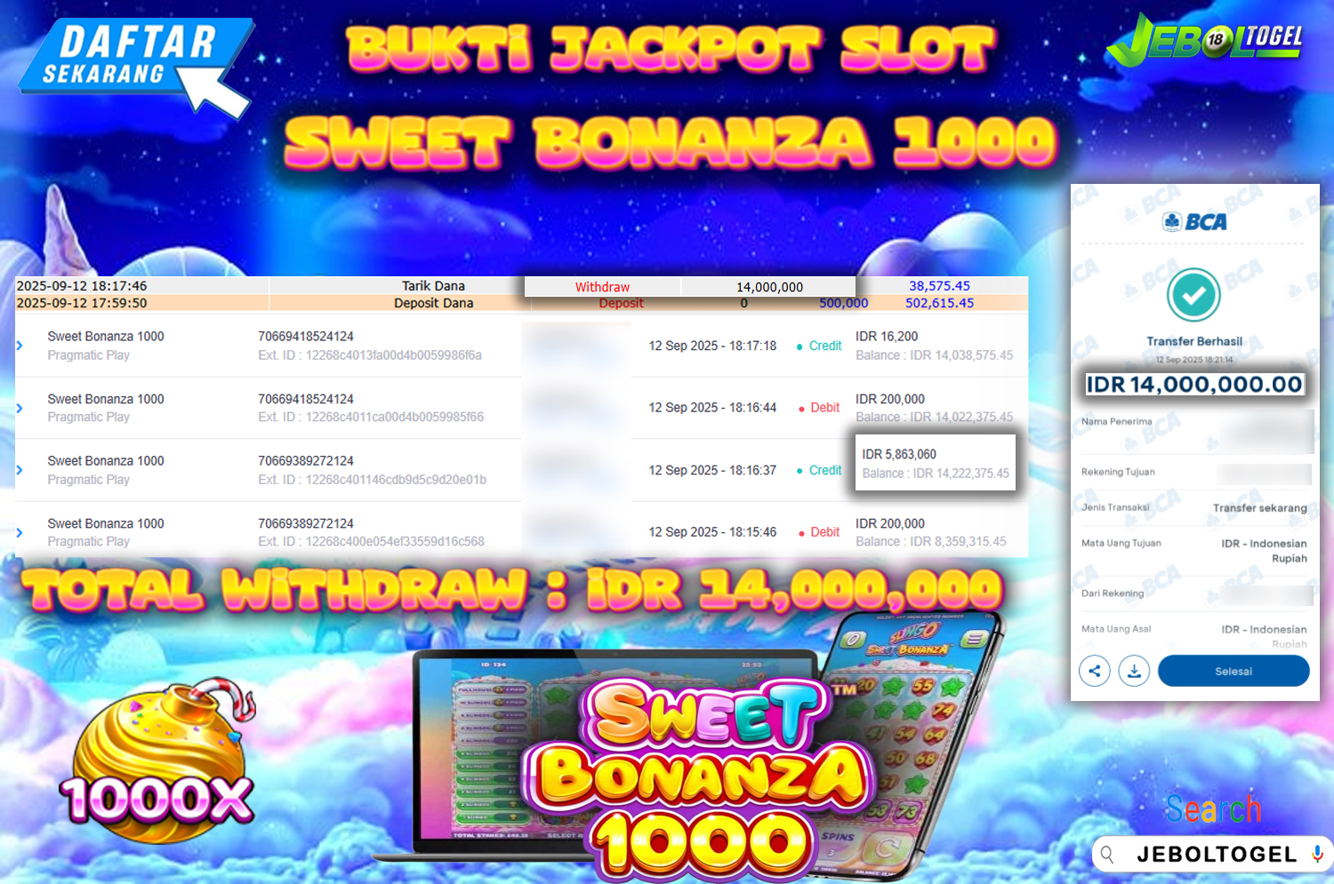 Kemenangan SLOTGAME Sweet bonanza 1000 ( Pragmatic Play ) Segera bergabung dengan kami JEBOLTOGEL, SITUS TERBESAR dan TERPERCAYA yang pasti BAYAR JP ANDA!