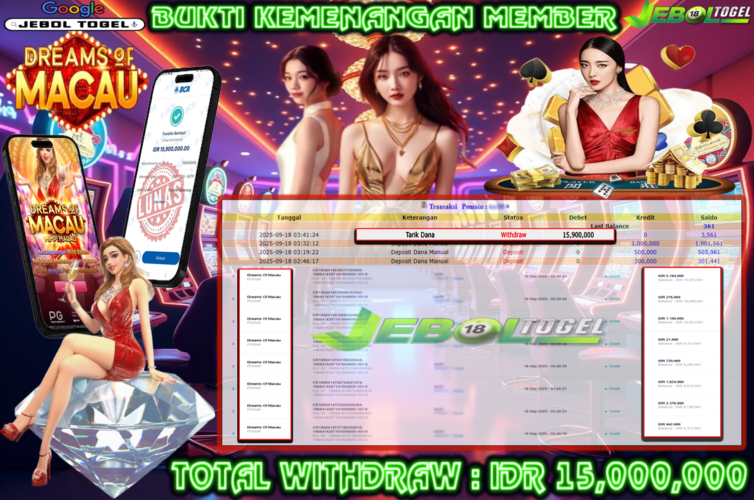 Kemenangan SLOTGAME Dreams Of Macau ( PG Soft ) Segera bergabung dengan kami JEBOLTOGEL, SITUS TERBESAR dan TERPERCAYA yang pasti BAYAR JP ANDA!