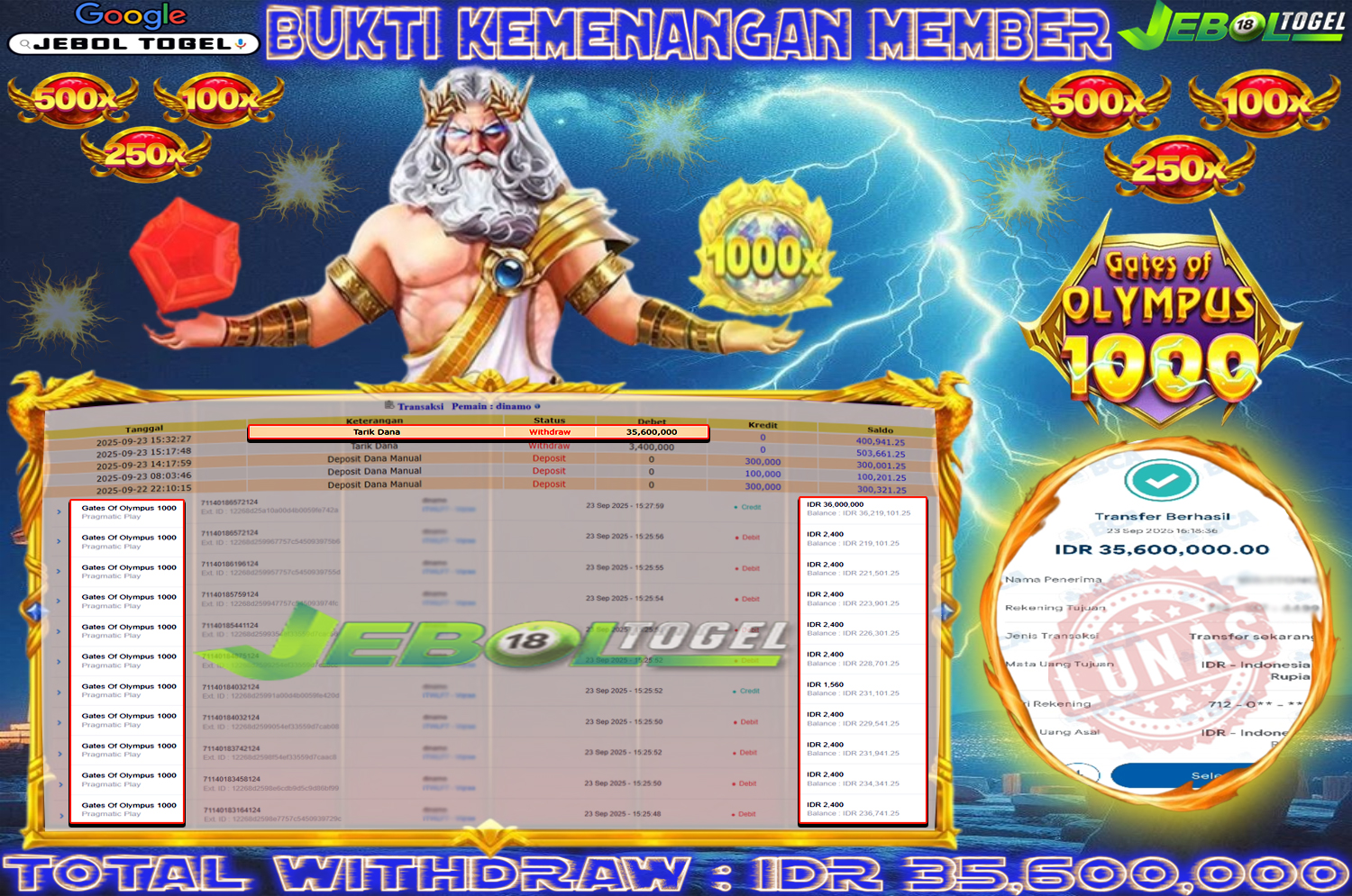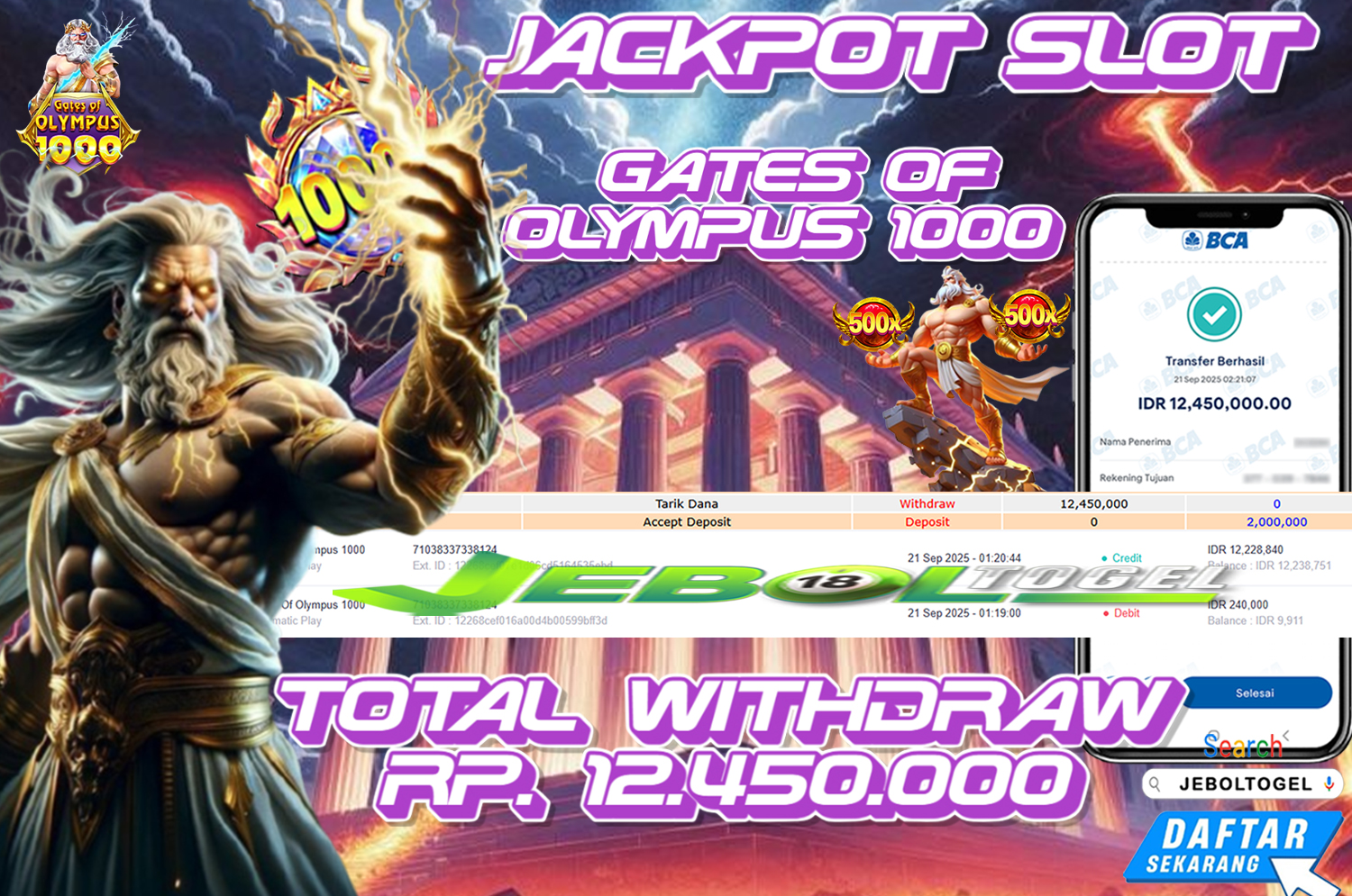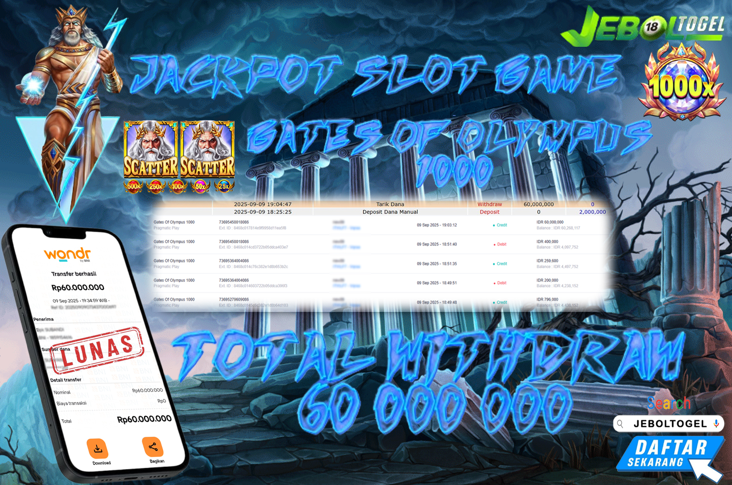 Kemenangan SLOTGAME GATES OF OLYMPUS 1000 ( Pragmatic Play ) Segera bergabung dengan kami JEBOLTOGEL, SITUS TERBESAR dan TERPERCAYA yang pasti BAYAR JP ANDA!