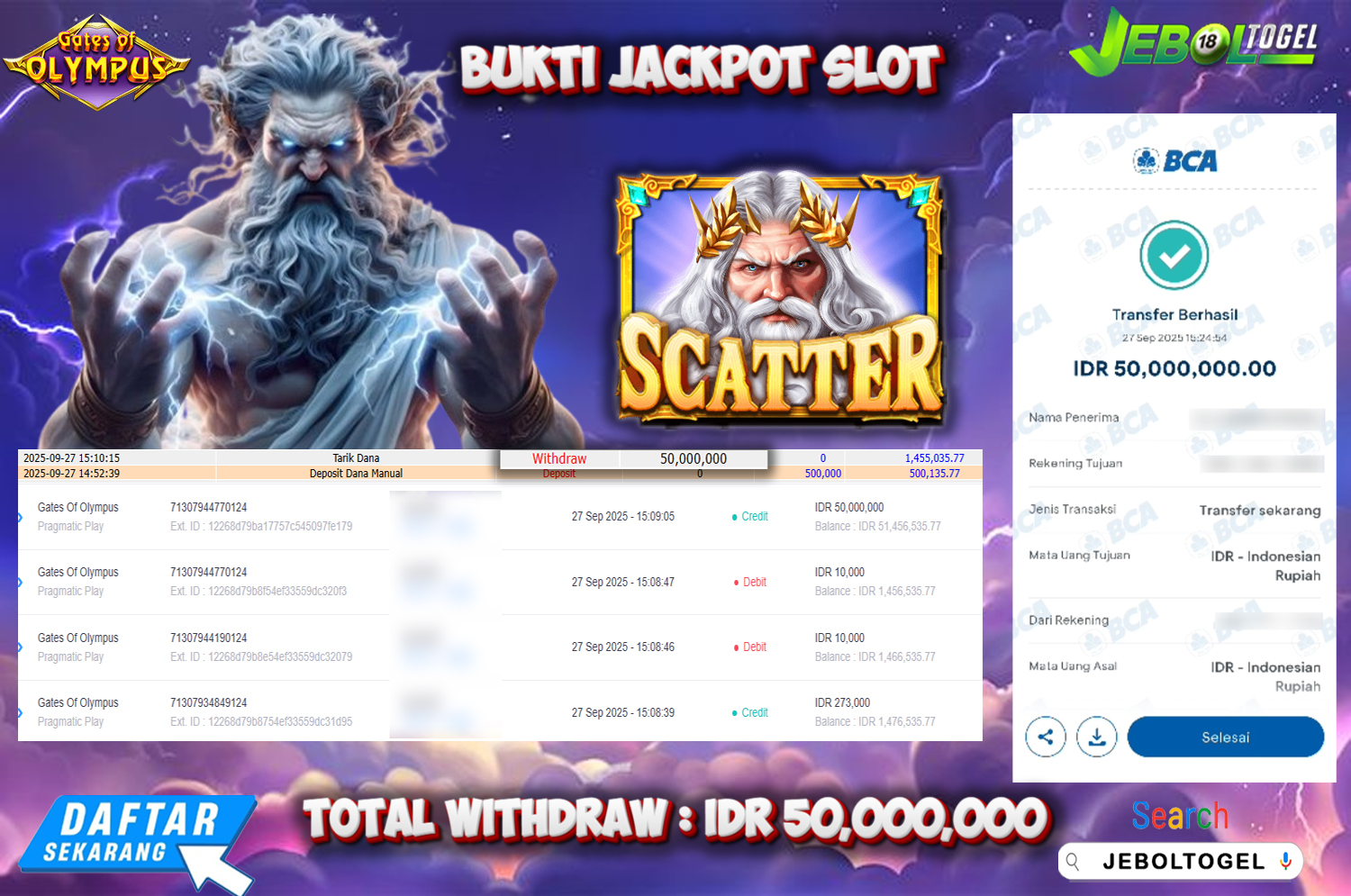 Kemenangan SLOTGAME Gates Of Olympus ( Pragmatic Play ) Segera bergabung dengan kami JEBOLTOGEL, SITUS TERBESAR dan TERPERCAYA yang pasti BAYAR JP ANDA!