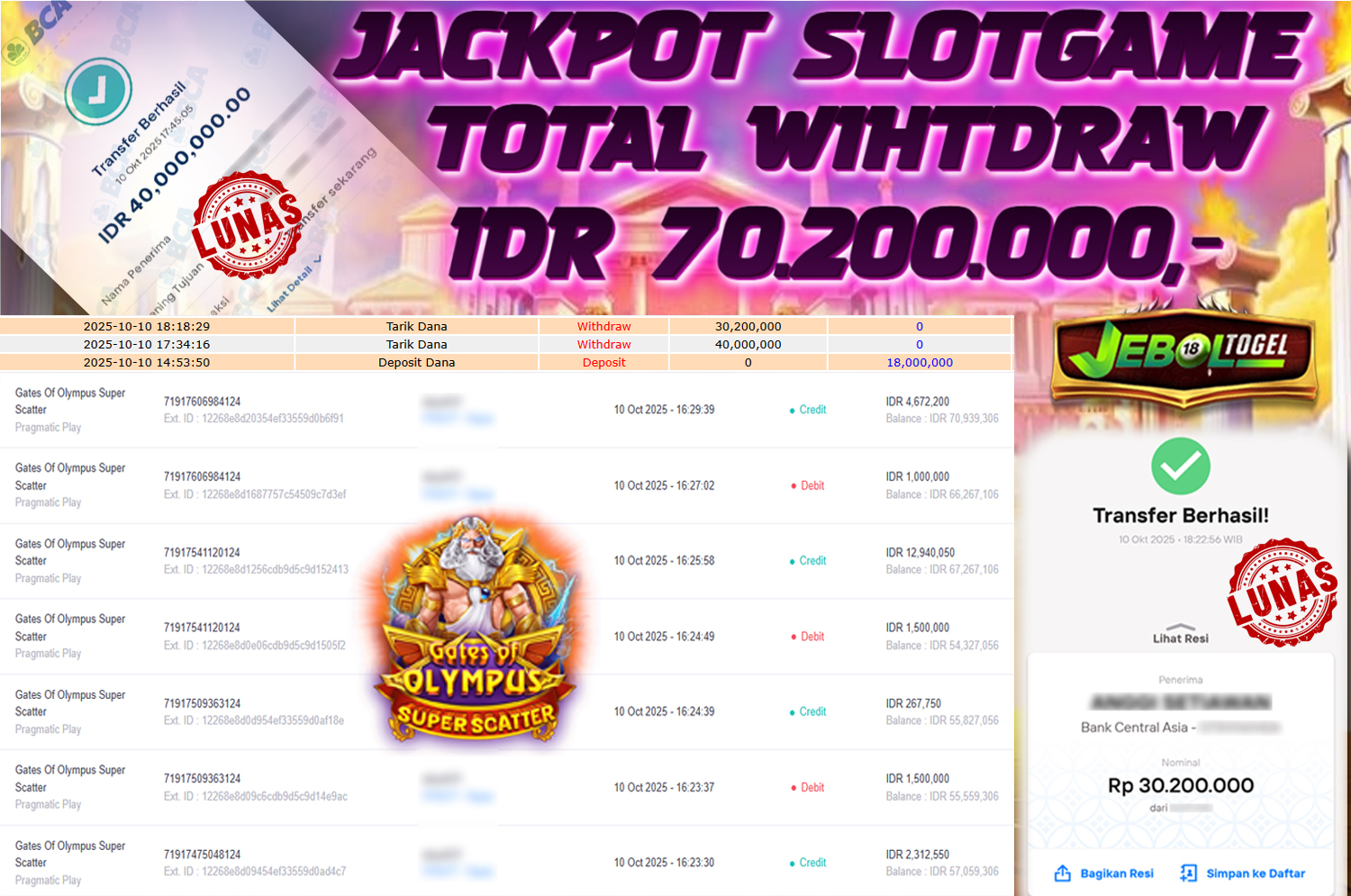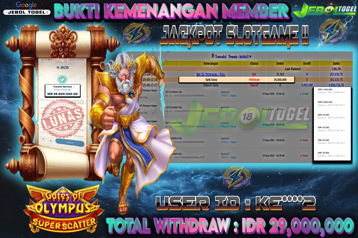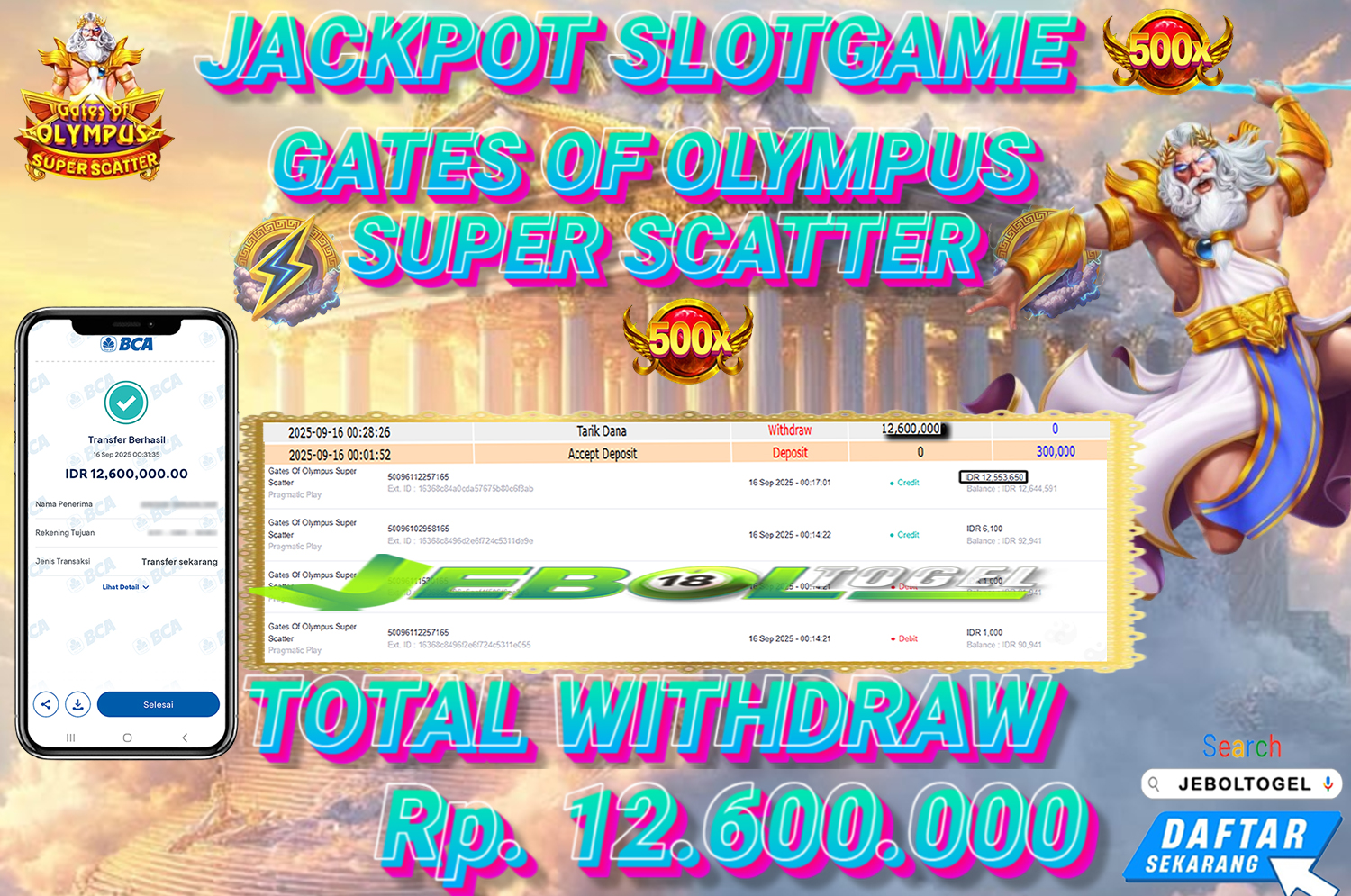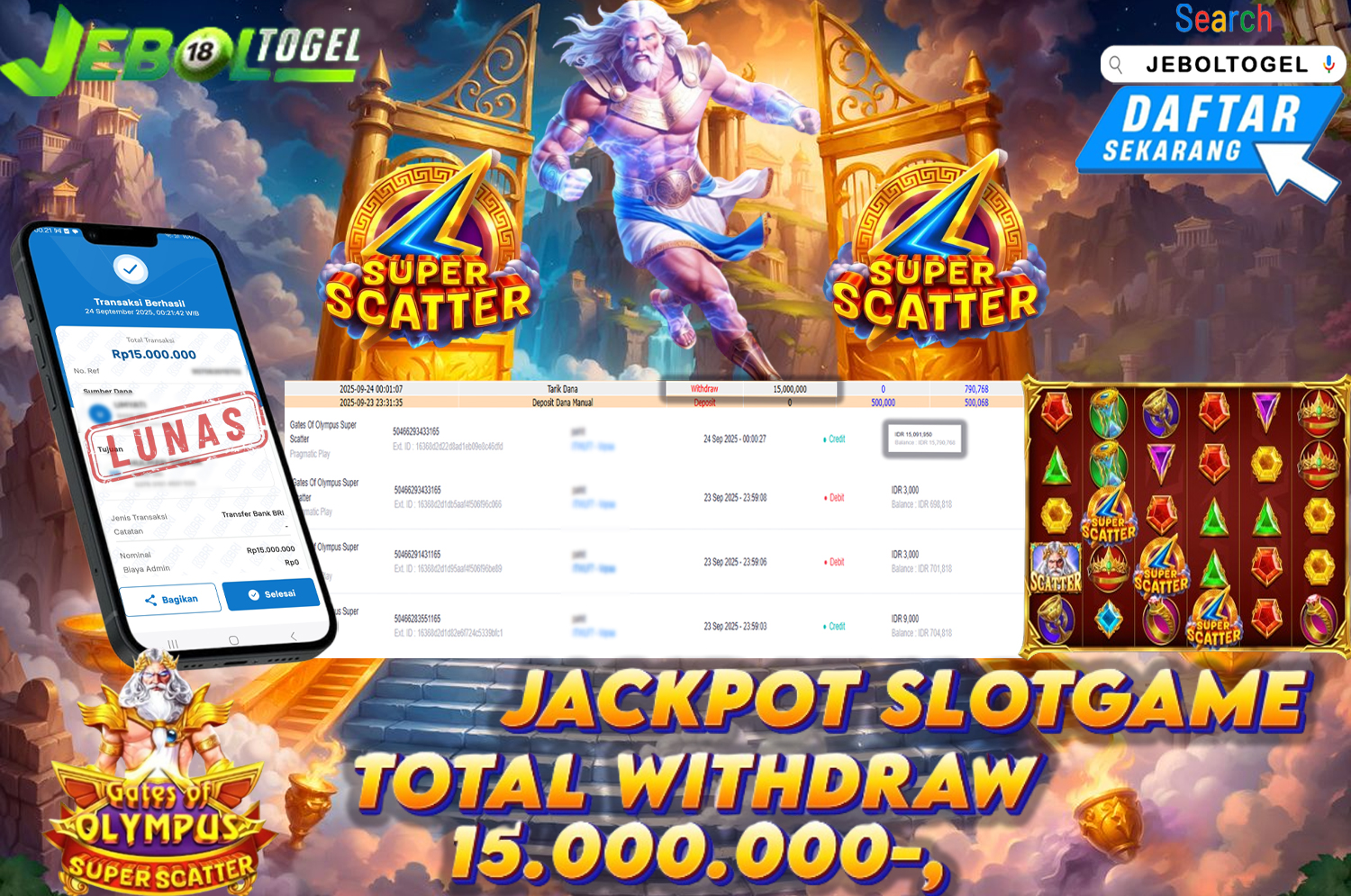 Kemenangan SLOTGAME Gates Of Olympus Super Scatter ( Pragmatic Play ) Segera bergabung dengan kami JEBOLTOGEL, SITUS TERBESAR dan TERPERCAYA yang pasti BAYAR JP ANDA!