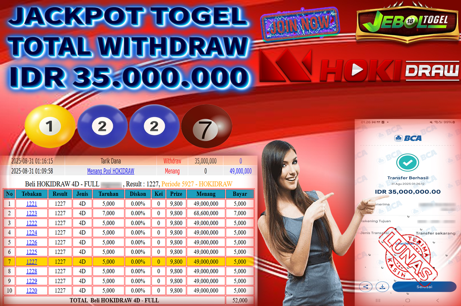 Kemenangan TOGEL PASARAN ( HOKI DRAW ) Segera bergabung dengan kami JEBOLTOGEL, SITUS TERBESAR dan TERPERCAYA yang pasti BAYAR JP ANDA!