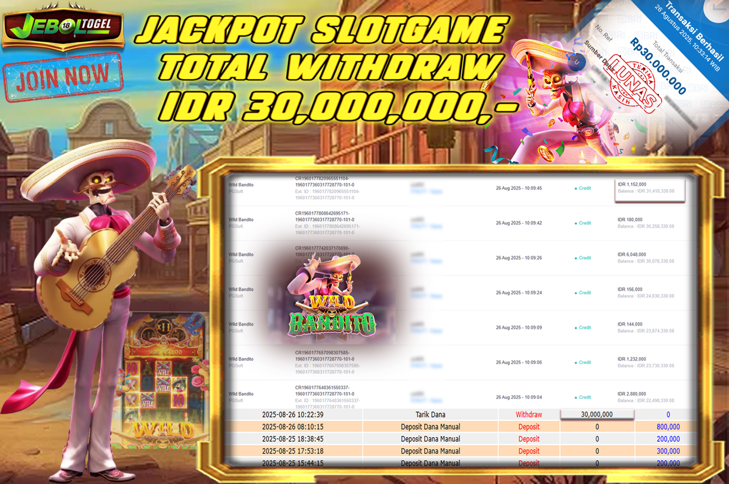 Kemenangan SLOTGAME WILD BANDITO ( PG Soft ) Segera bergabung dengan kami JEBOLTOGEL. SITUS TERBESAR dan TERPERCAYA yang pasti BAYAR JP ANDA!