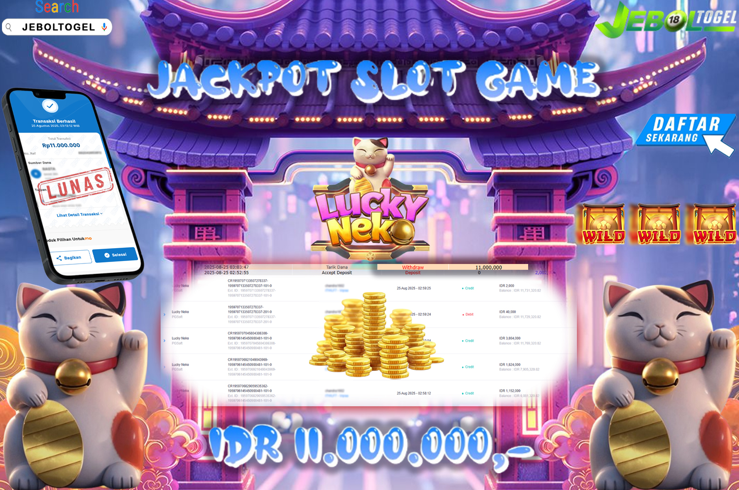 Kemenangan SLOTGAME LUCKY NEKO ( PG Soft ) Segera bergabung dengan kami JEBOLTOGEL. SITUS TERBESAR dan TERPERCAYA yang pasti BAYAR JP ANDA!