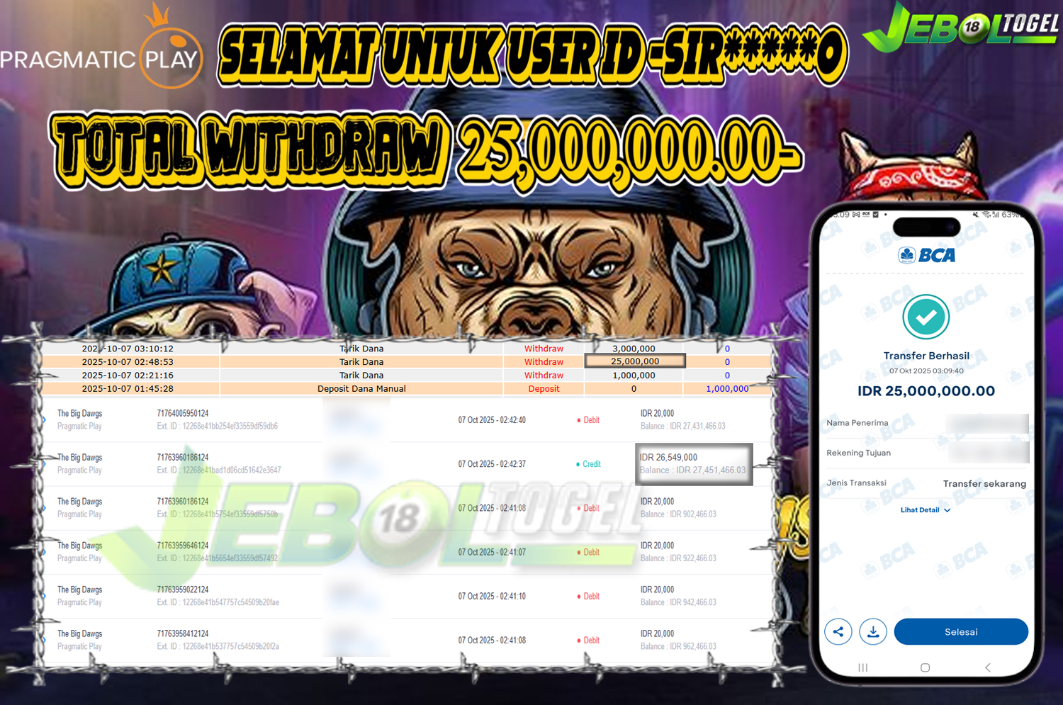 Kemenangan SLOTGAME The Big Dawgs ( Pragmatic Play ) Segera bergabung dengan kami JEBOLTOGEL, SITUS TERBESAR dan TERPERCAYA yang pasti BAYAR JP ANDA!