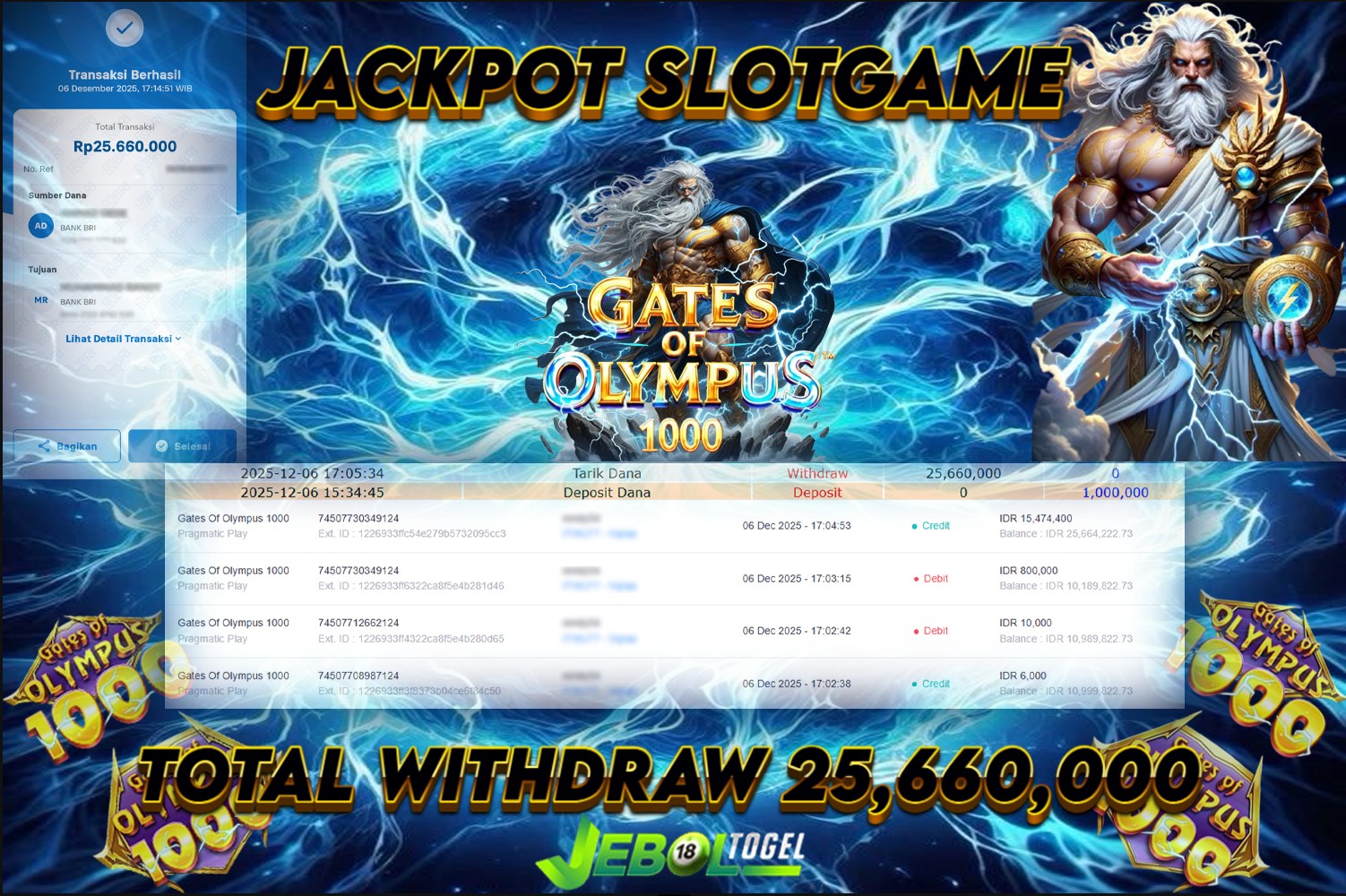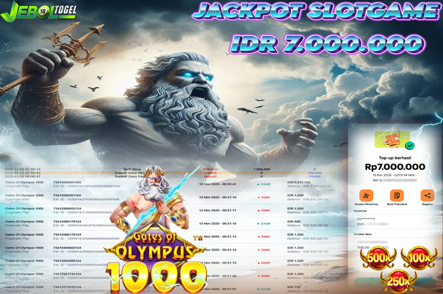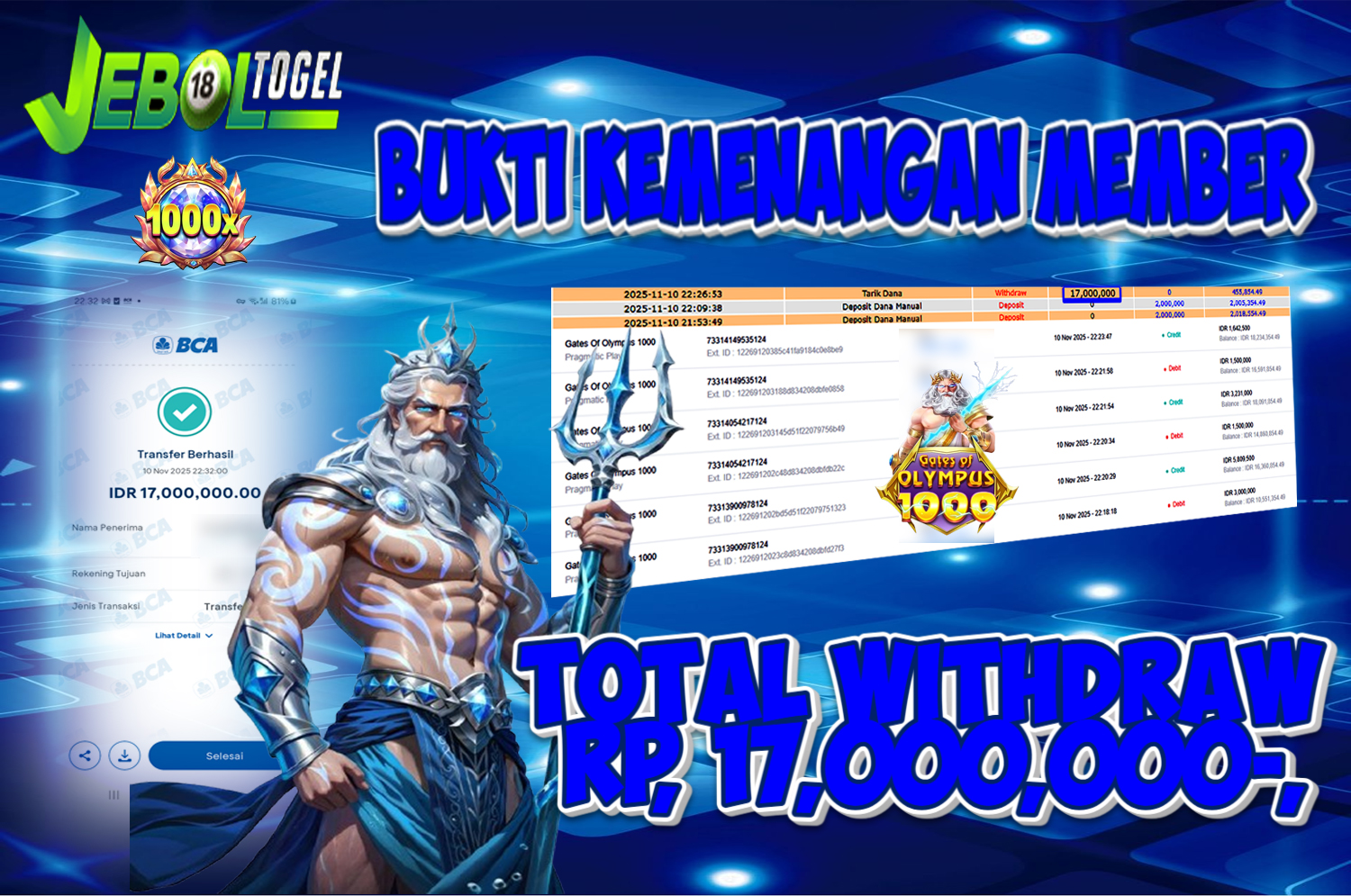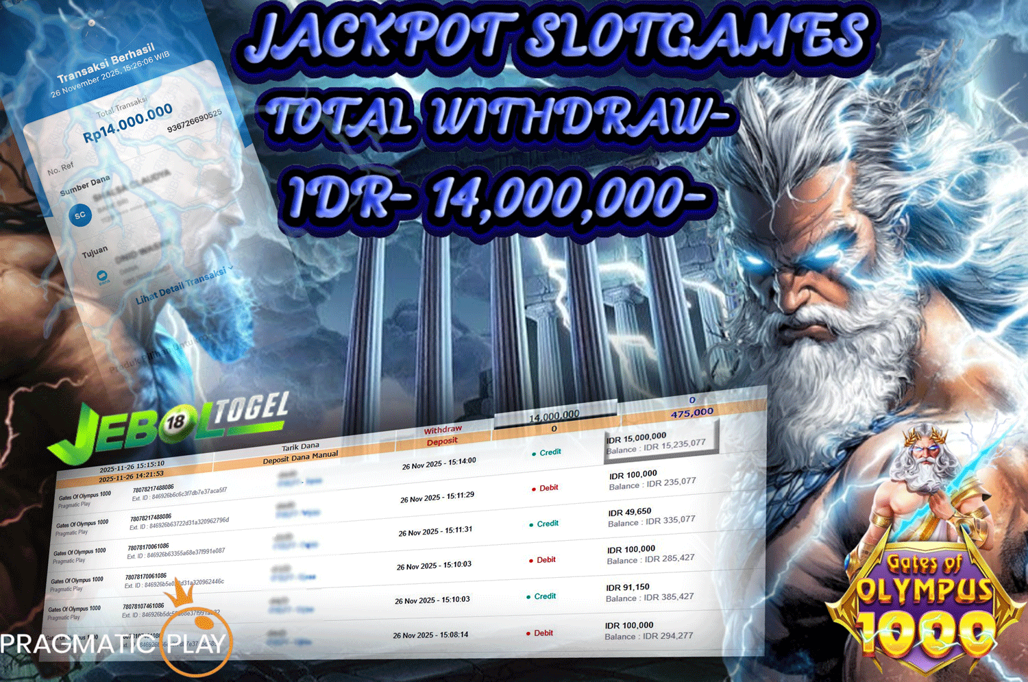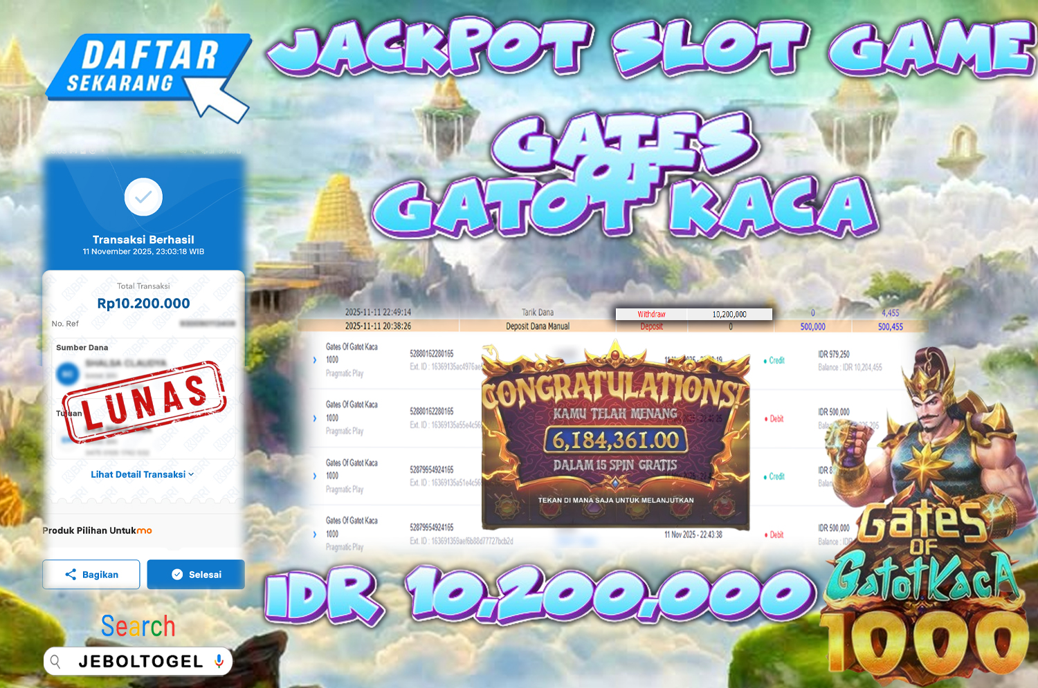 Kemenangan SLOTGAME Gates Of Gatot Kaca 1000 ( Pragmatic Play ) Segera bergabung dengan kami JEBOLTOGEL, SITUS TERBESAR dan TERPERCAYA yang pasti BAYAR JP ANDA!