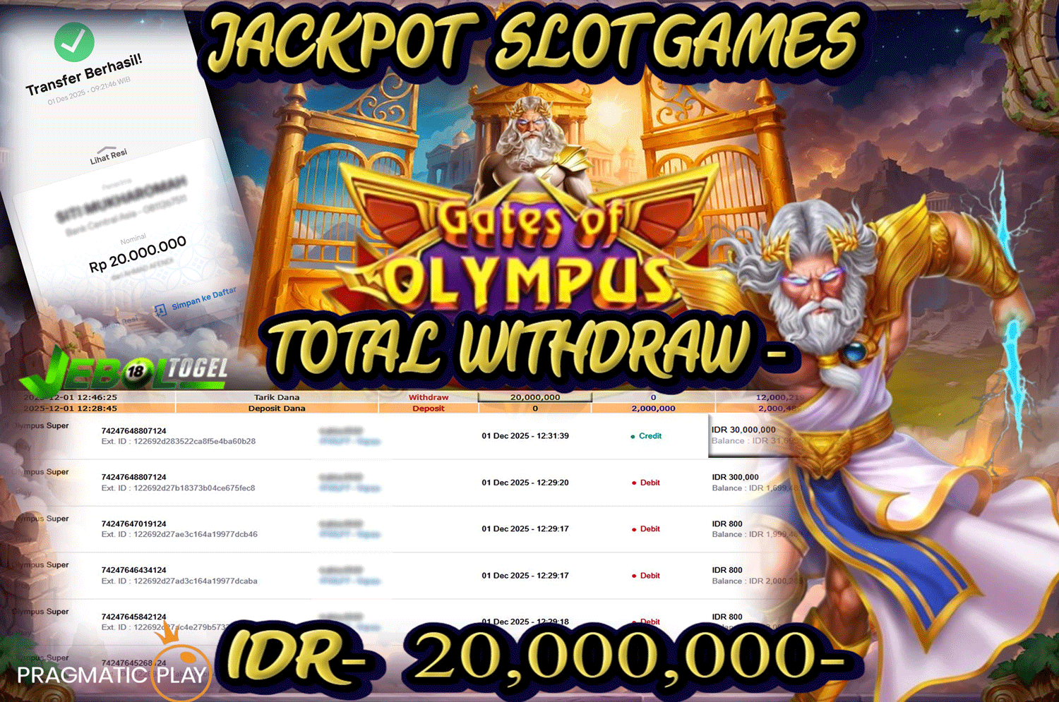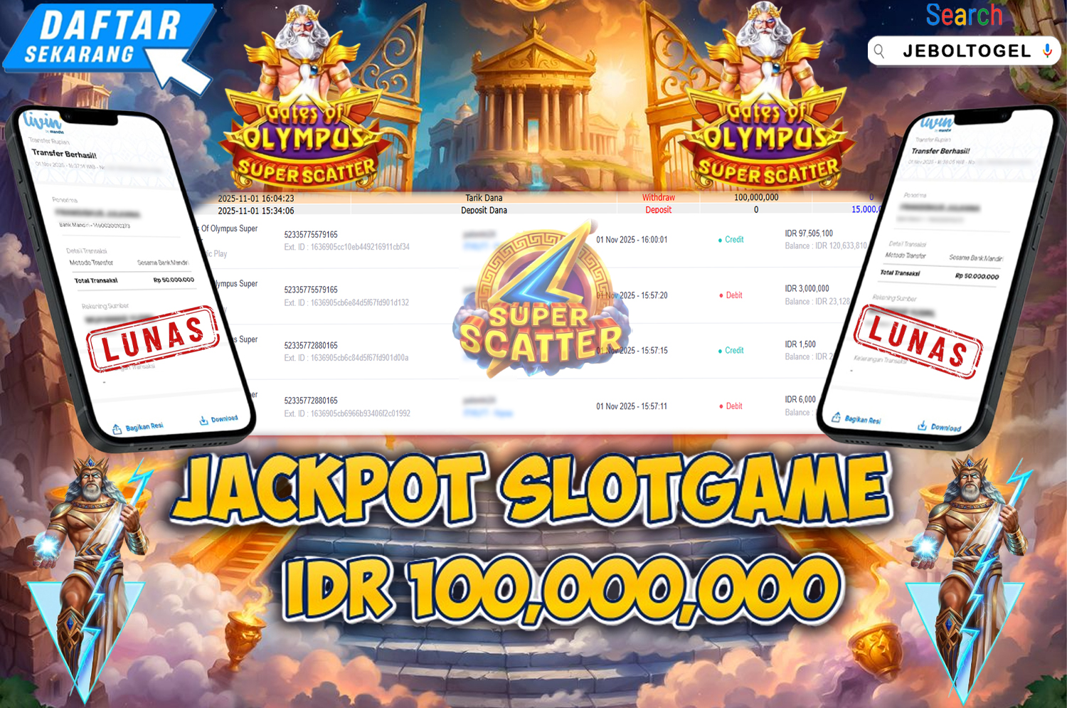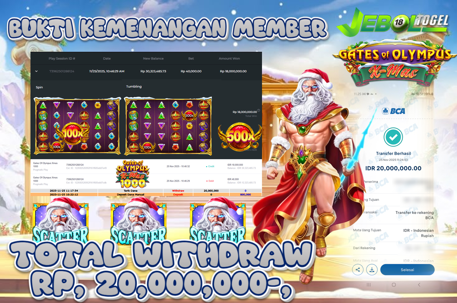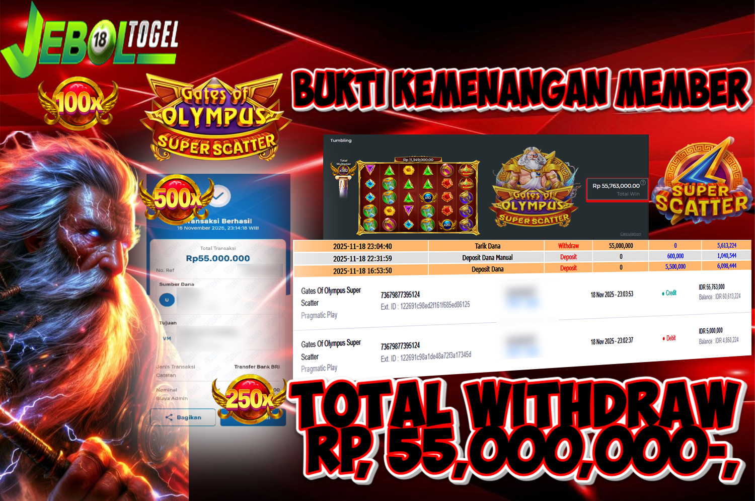 Kemenangan SLOTGAME Gates of Olympus Super Scatter ( Pragmatic Play ) Segera bergabung dengan kami JEBOLTOGEL, SITUS TERBESAR dan TERPERCAYA yang pasti BAYAR JP ANDA!