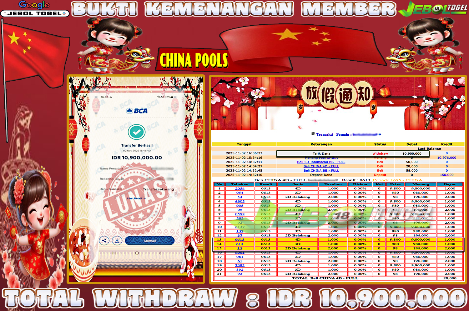 Kemenangan TOGEL Pasaran ( CHINA ) Segera bergabung dengan kami JEBOLTOGEL, SITUS TERBESAR dan TERPERCAYA yang pasti BAYAR JP ANDA !