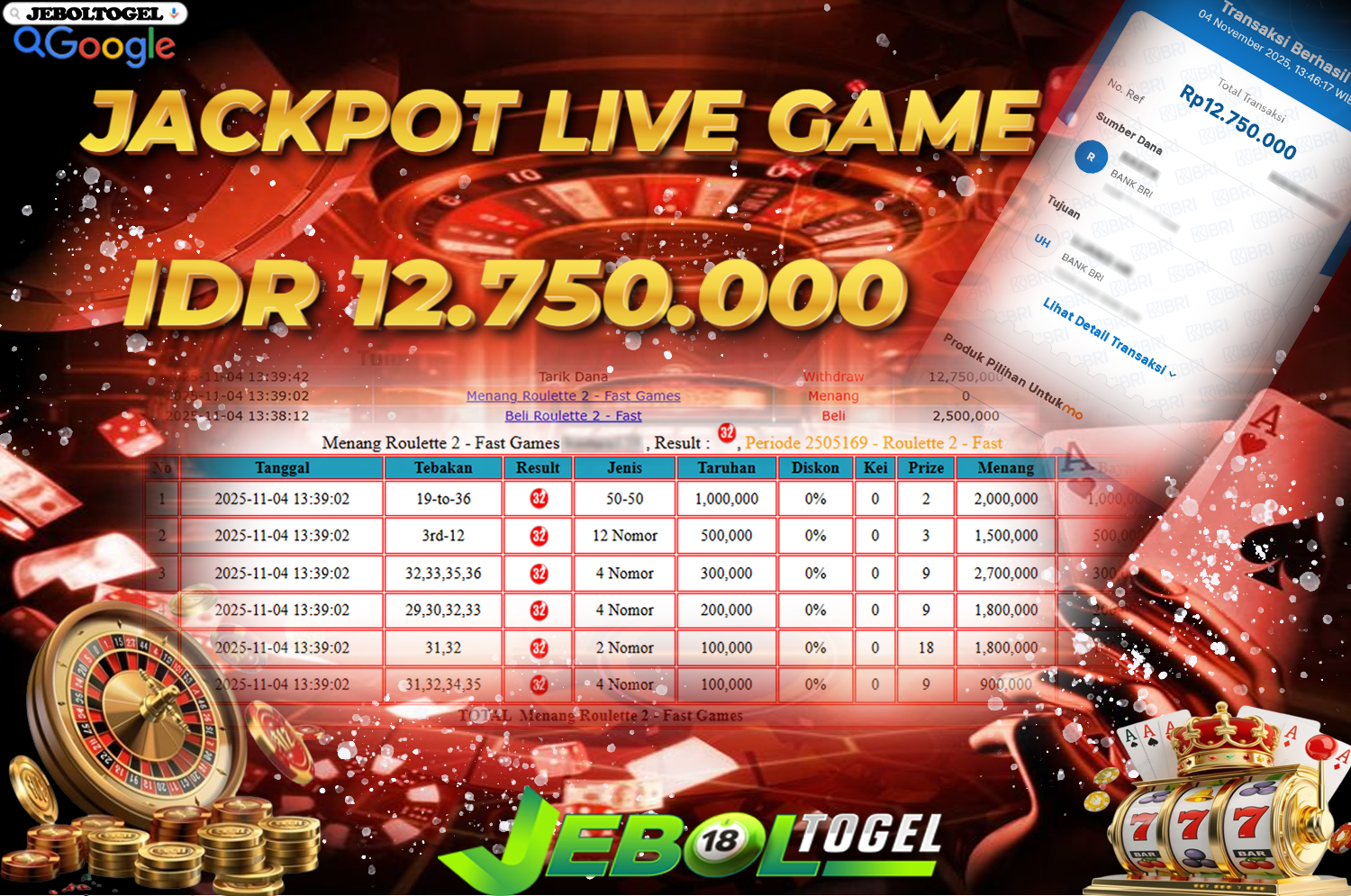Kemenangan TOGEL LIVEGAMES ( Roulette 2 ) Segera bergabung dengan kami JEBOLTOGEL, SITUS TERBESAR dan TERPERCAYA yang pasti BAYAR JP ANDA !