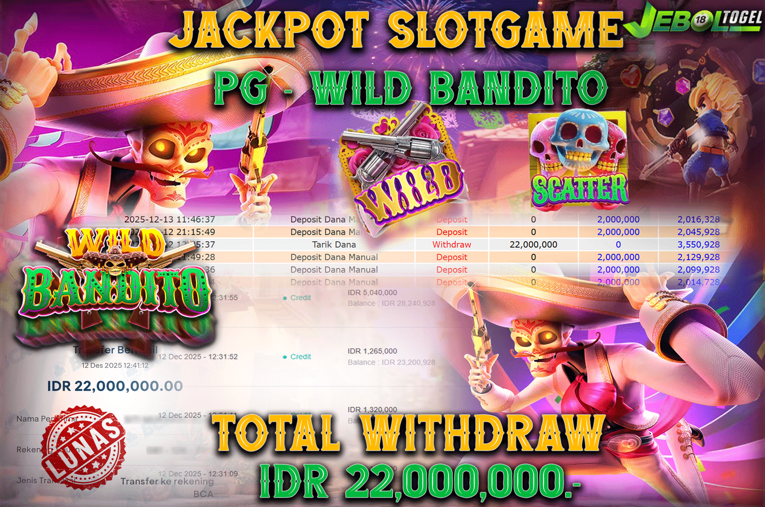 Kemenangan SLOTGAME Wild Bandito ( PGSoft ) Segera bergabung dengan kami JEBOLTOGEL, SITUS TERBESAR dan TERPERCAYA yang pasti BAYAR JP ANDA!