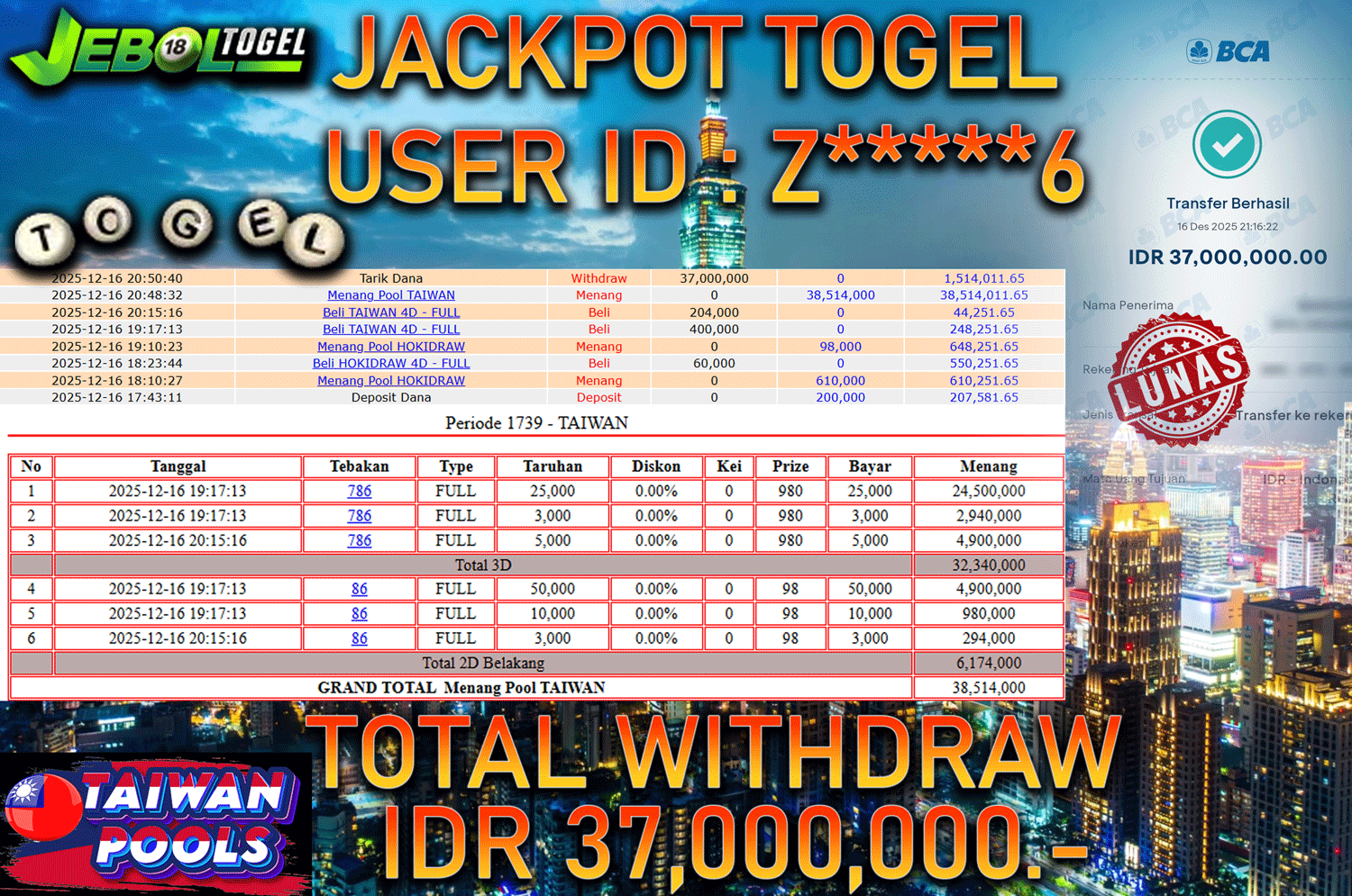 BUKTI JP ( 16 DESEMBER 2025 ) LUNAS RP 37,000,000