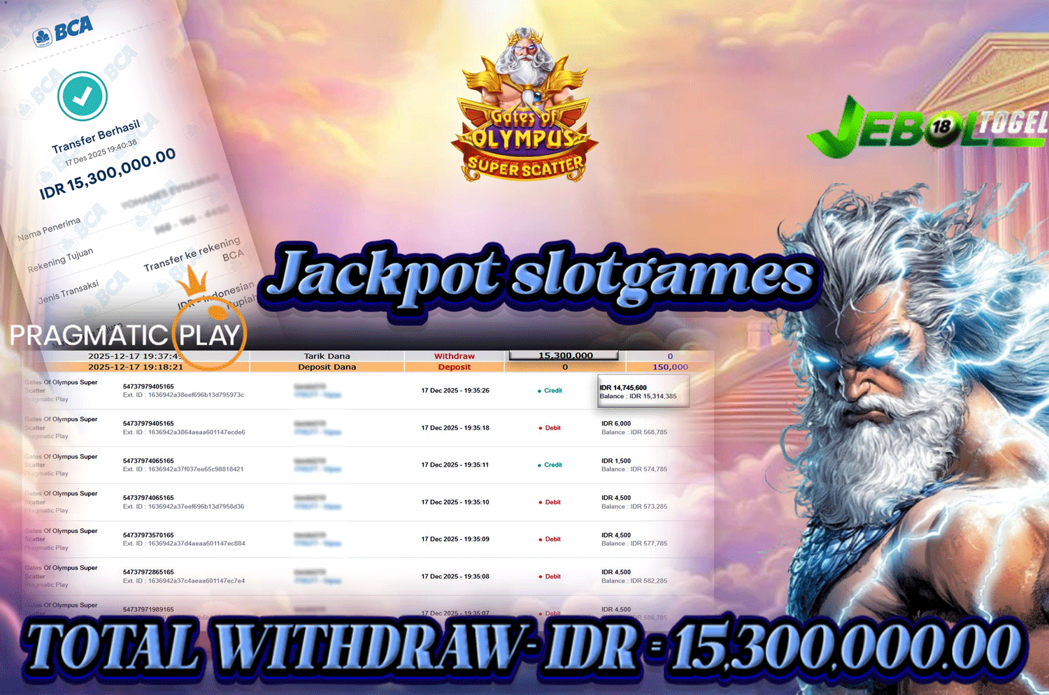 Kemenangan SLOTGAME Gates Of Olympus Super Scatter ( Pragmatic Play ) Segera bergabung dengan kami JEBOLTOGEL, SITUS TERBESAR dan TERPERCAYA yang pasti BAYAR JP ANDA!
