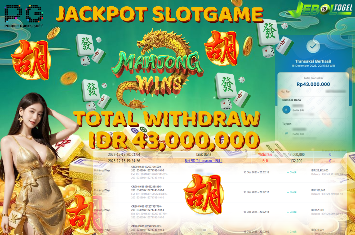 Kemenangan SLOTGAME MAHJONG WAYS ( PG Soft ) Segera bergabung dengan kami JEBOLTOGEL, SITUS TERBESAR dan TERPERCAYA yang pasti BAYAR JP ANDA!