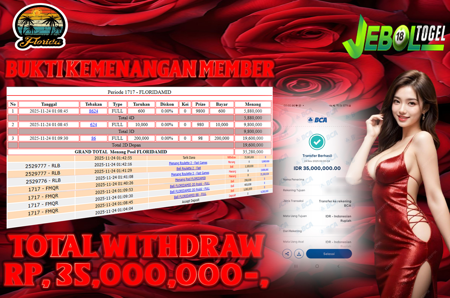 Kemenangan TOGEL Pasaran ( FLORIDAMID ) Segera bergabung dengan kami JEBOLTOGEL, SITUS TERBESAR dan TERPERCAYA yang pasti BAYAR JP ANDA !