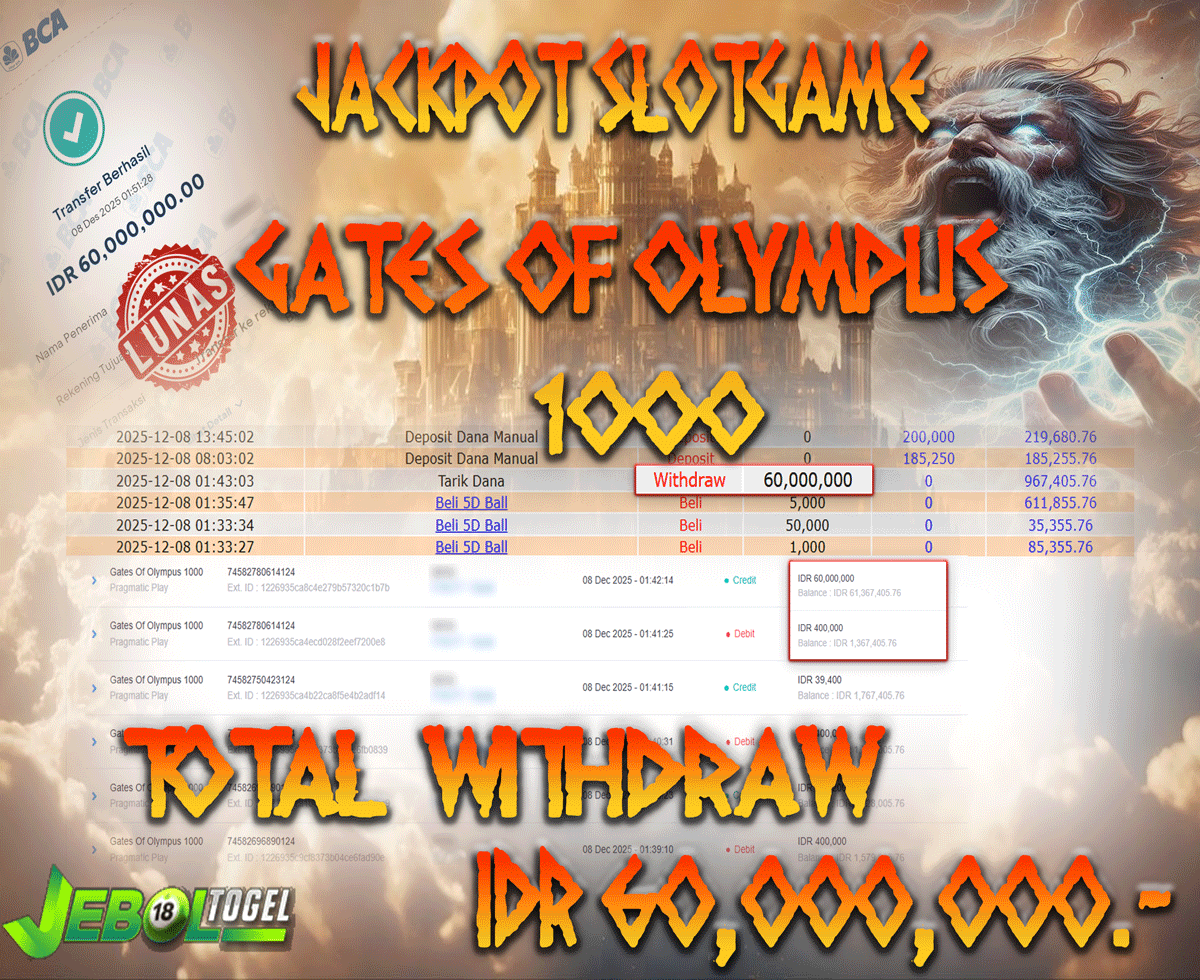 Kemenangan SLOTGAME Gates Of Olympus ( Pragmatic Play ) Segera bergabung dengan kami JEBOLTOGEL, SITUS TERBESAR dan TERPERCAYA yang pasti BAYAR JP ANDA!