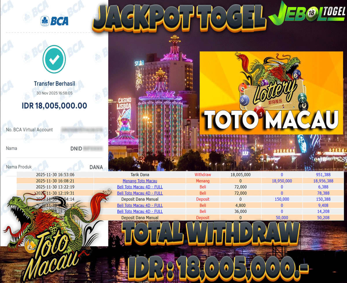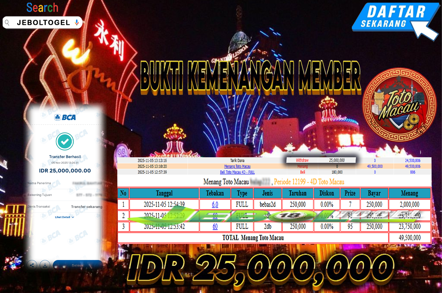 Kemenangan TOGEL Pasaran ( TOTO MACAU ) Segera bergabung dengan kami JEBOLTOGEL, SITUS TERBESAR dan TERPERCAYA yang pasti BAYAR JP ANDA !