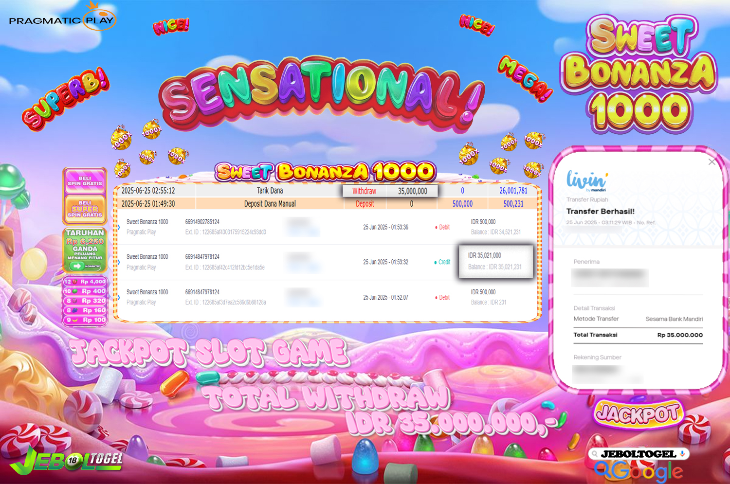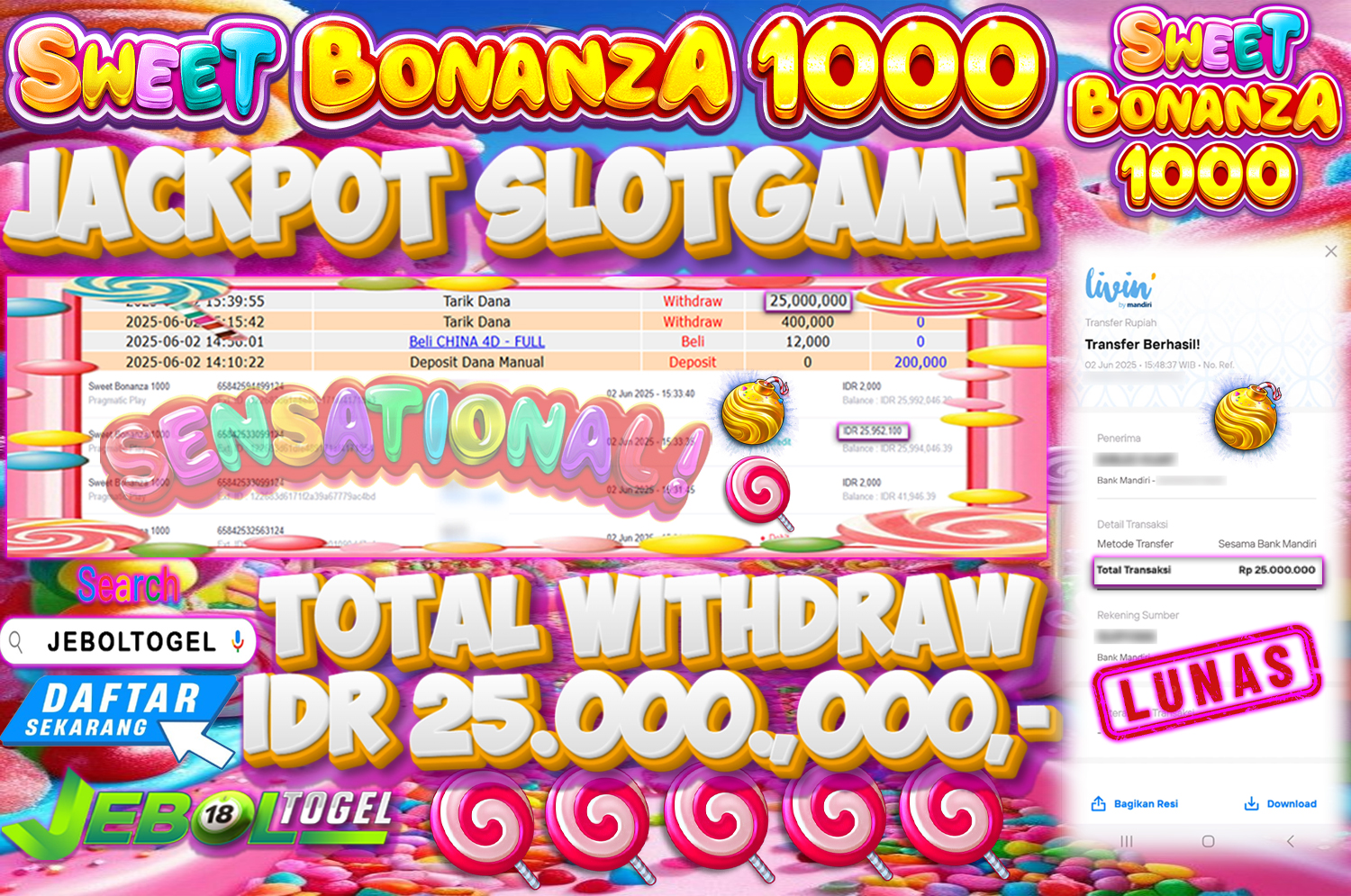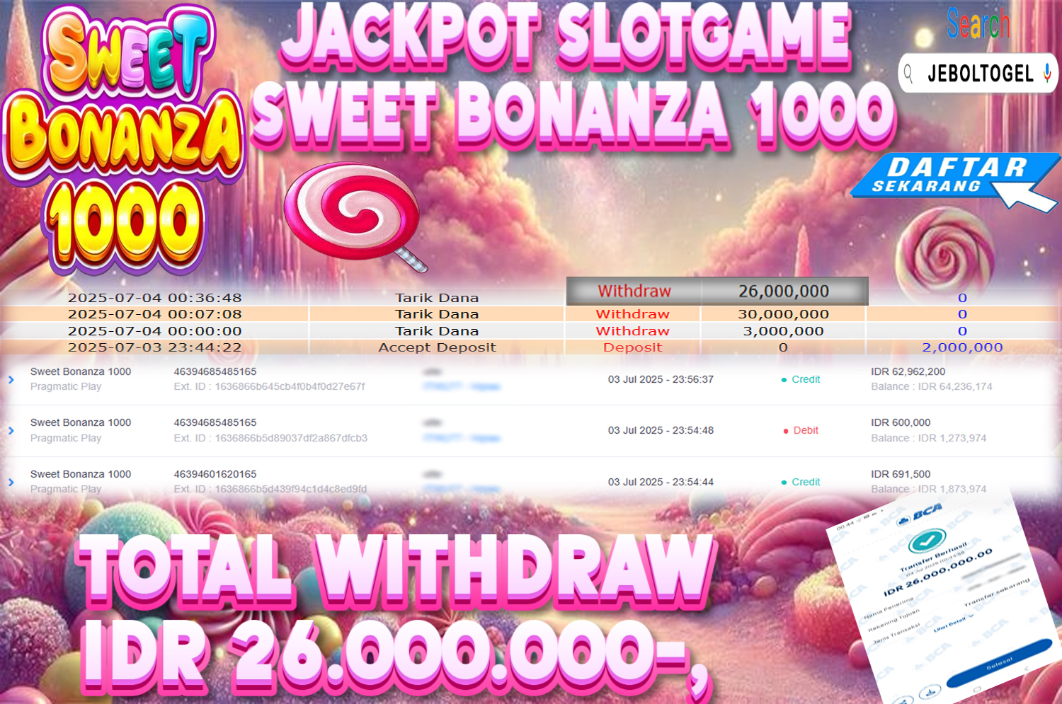 Kemenangan SLOTGAME Sweet Bonanza 1000 (Pragmatic Play) Segera bergabung dengan kami JEBOLTOGEL, SITUS TERBESAR dan TERPERCAYA yang pasti BAYAR JP ANDA!