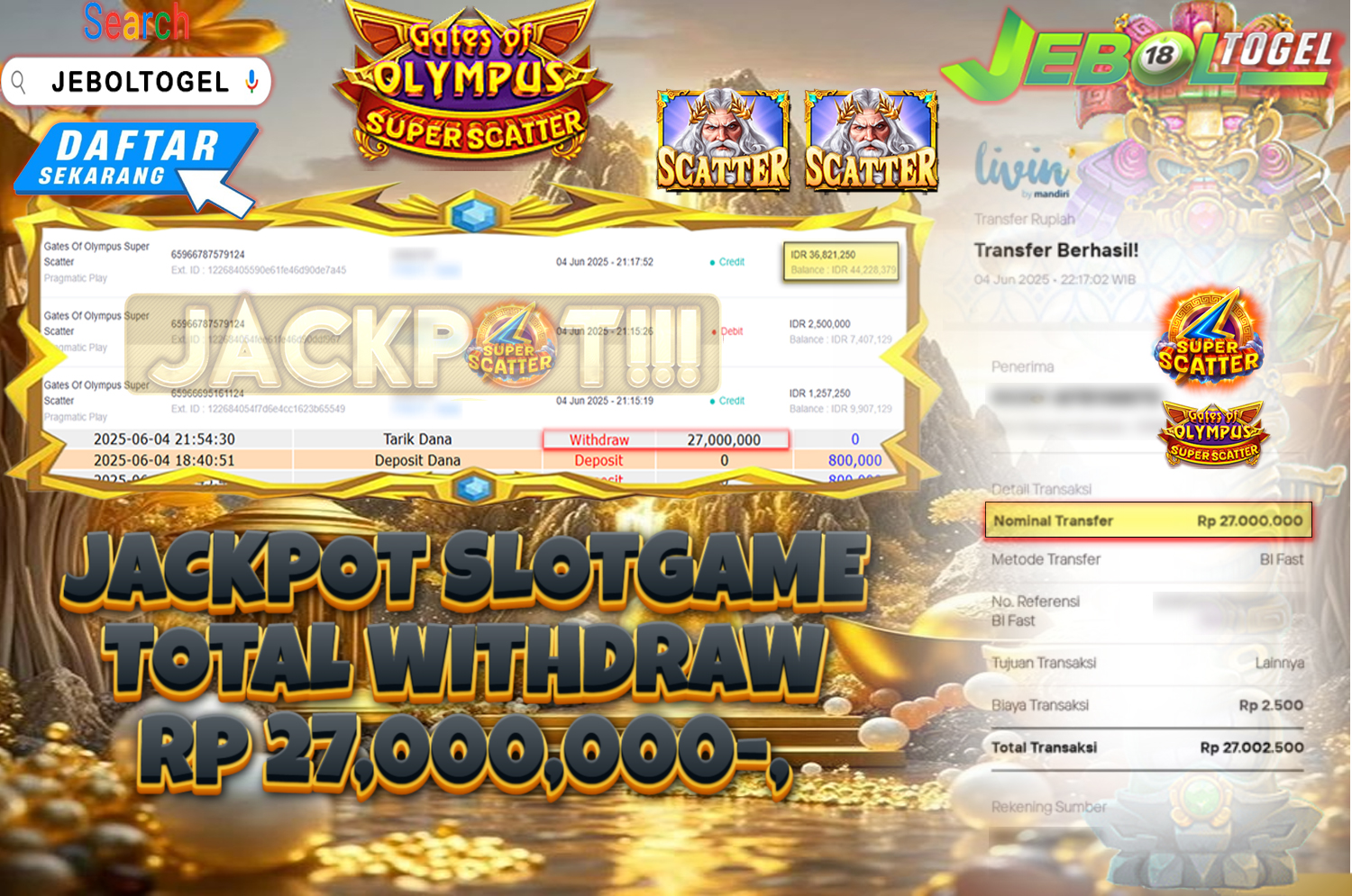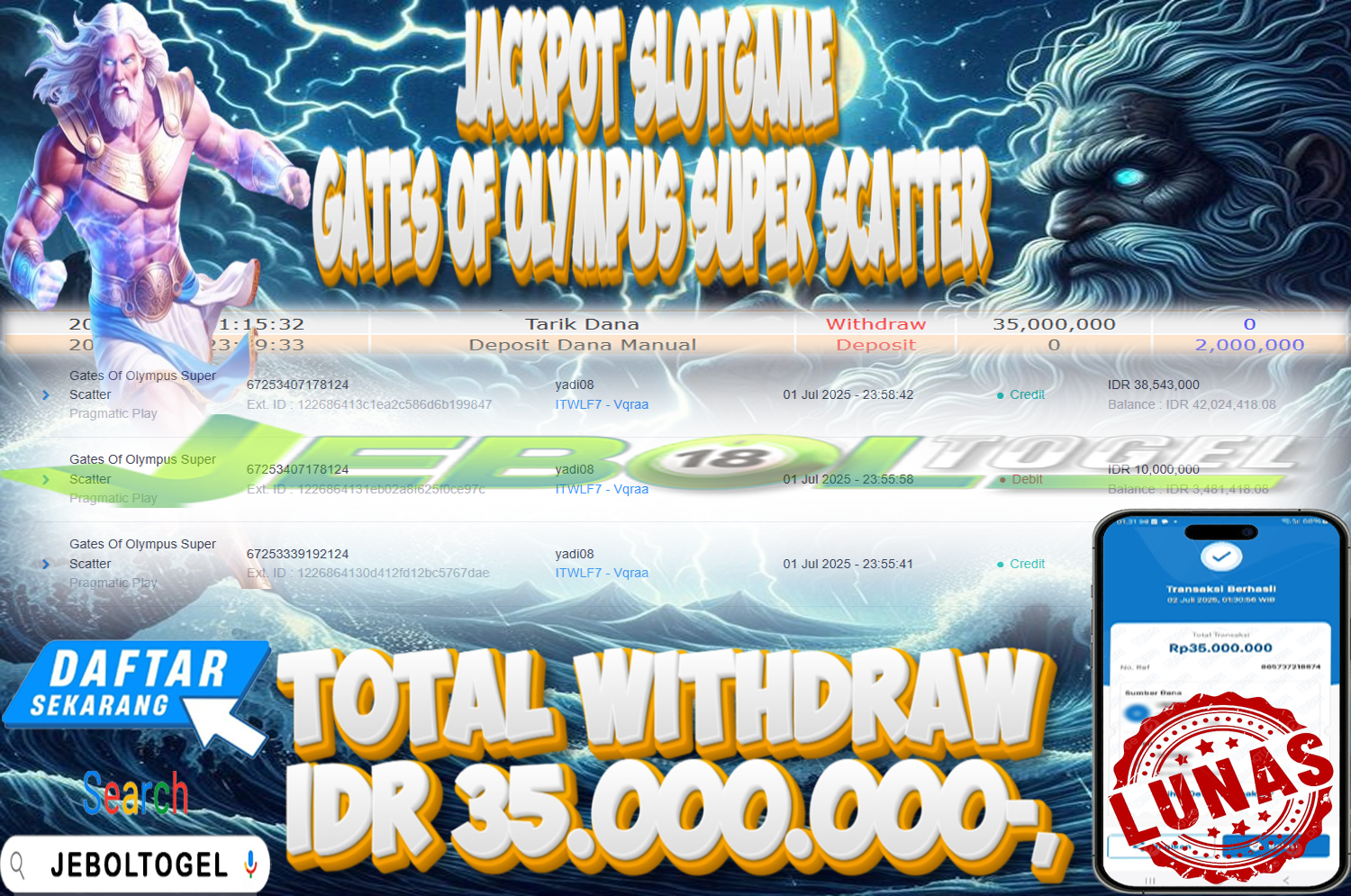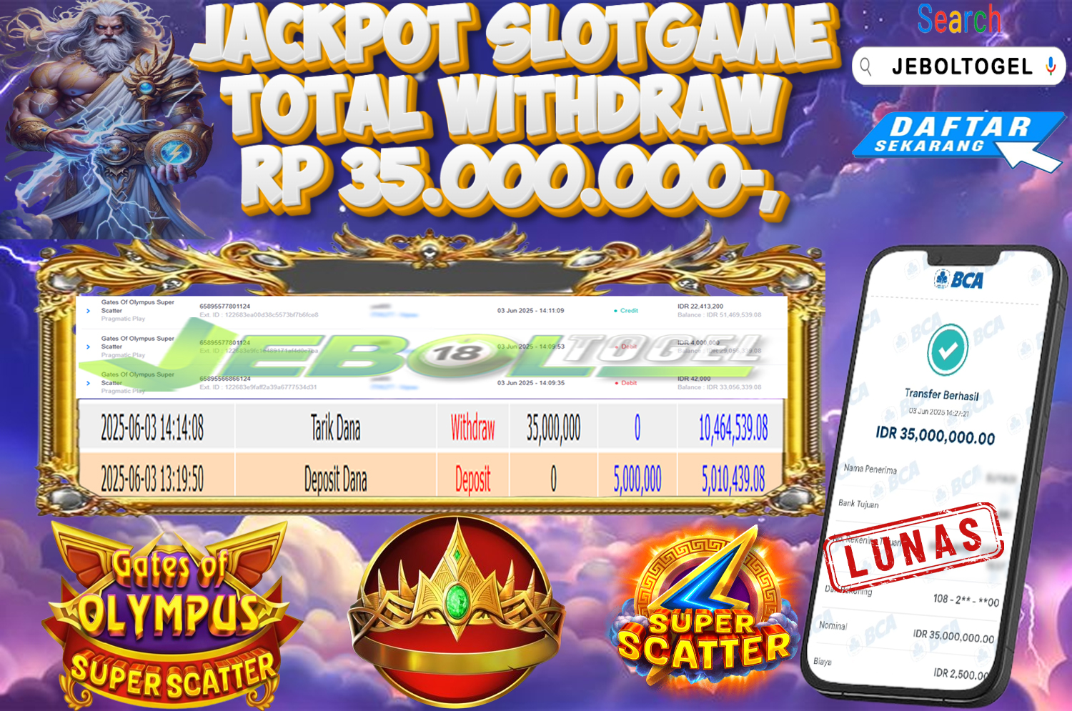 Kemenangan SLOTGAME Gates Of Olympus Super Scatter ( Pragmatic Play ) Segera bergabung dengan kami JEBOLTOGEL, SITUS TERBESAR dan TERPERCAYA yang pasti BAYAR JP ANDA