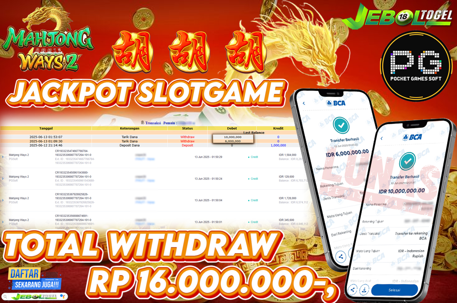 Kemenangan SLOTGAME Mahjong Ways 2 PGSoft Segera bergabung dengan kami JEBOLTOGEL, SITUS TERBESAR dan TERPERCAYA yang pasti BAYAR JP ANDA!