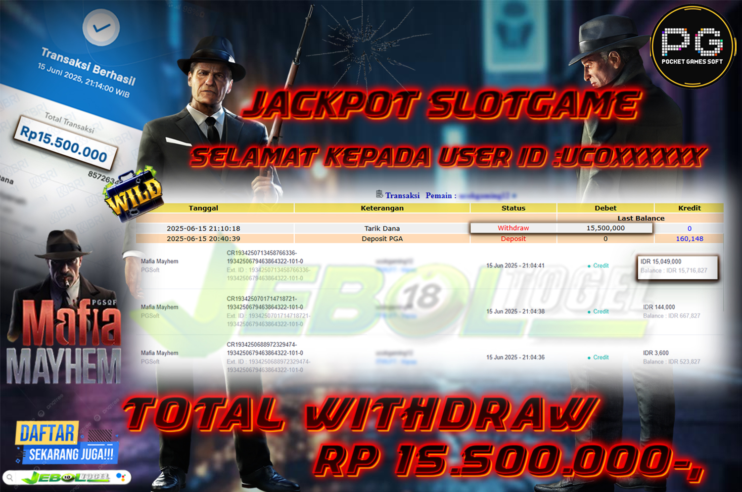 Kemenangan SLOTGAME Mafia Mayhem ( PGSoft ) Segera bergabung dengan kami JEBOLTOGEL, SITUS TERBESAR dan TERPERCAYA yang pasti BAYAR JP ANDA!
