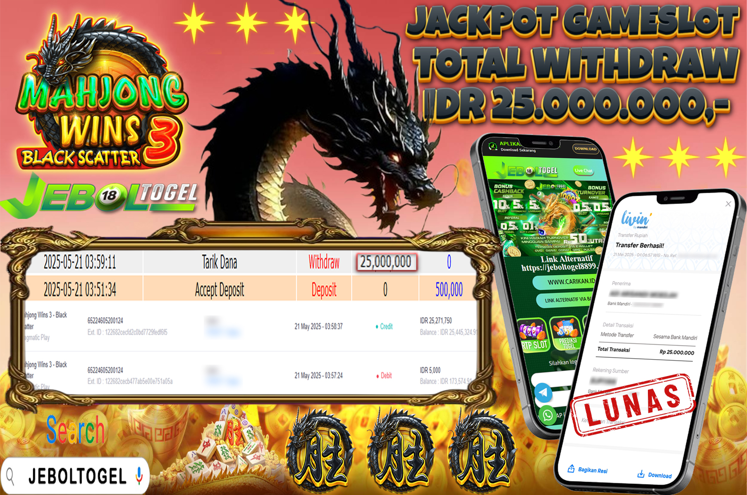 Kemenangan SLOTGAME Mahjong Wins 3 - Black Scatter ( Pragmatic Play ) Segera bergabung dengan kami JEBOLTOGEL, SITUS TERBESAR dan TERPERCAYA yang pasti BAYAR JP ANDA