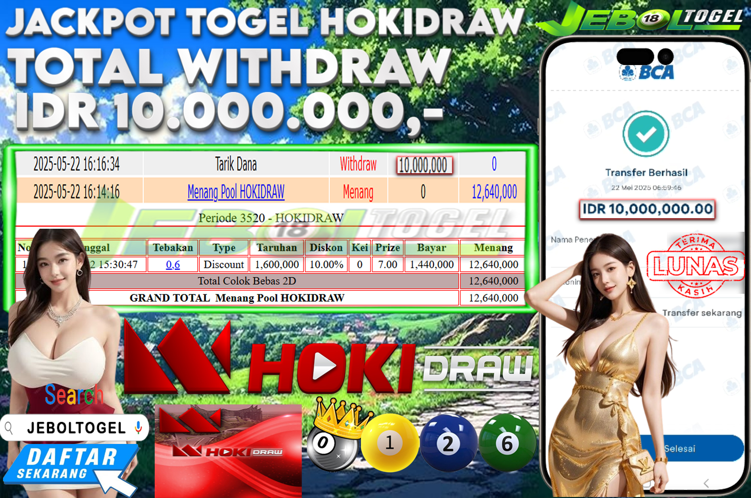 Kemenangan TOGEL PASARAN HOKIDRAW Segera bergabung dengan kami JEBOLTOGEL, SITUS TERBESAR dan TERPERCAYA yang pasti BAYAR JP ANDA