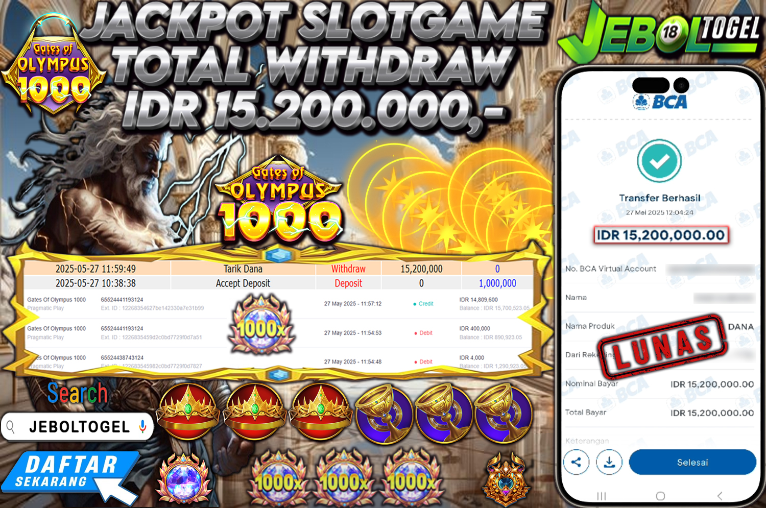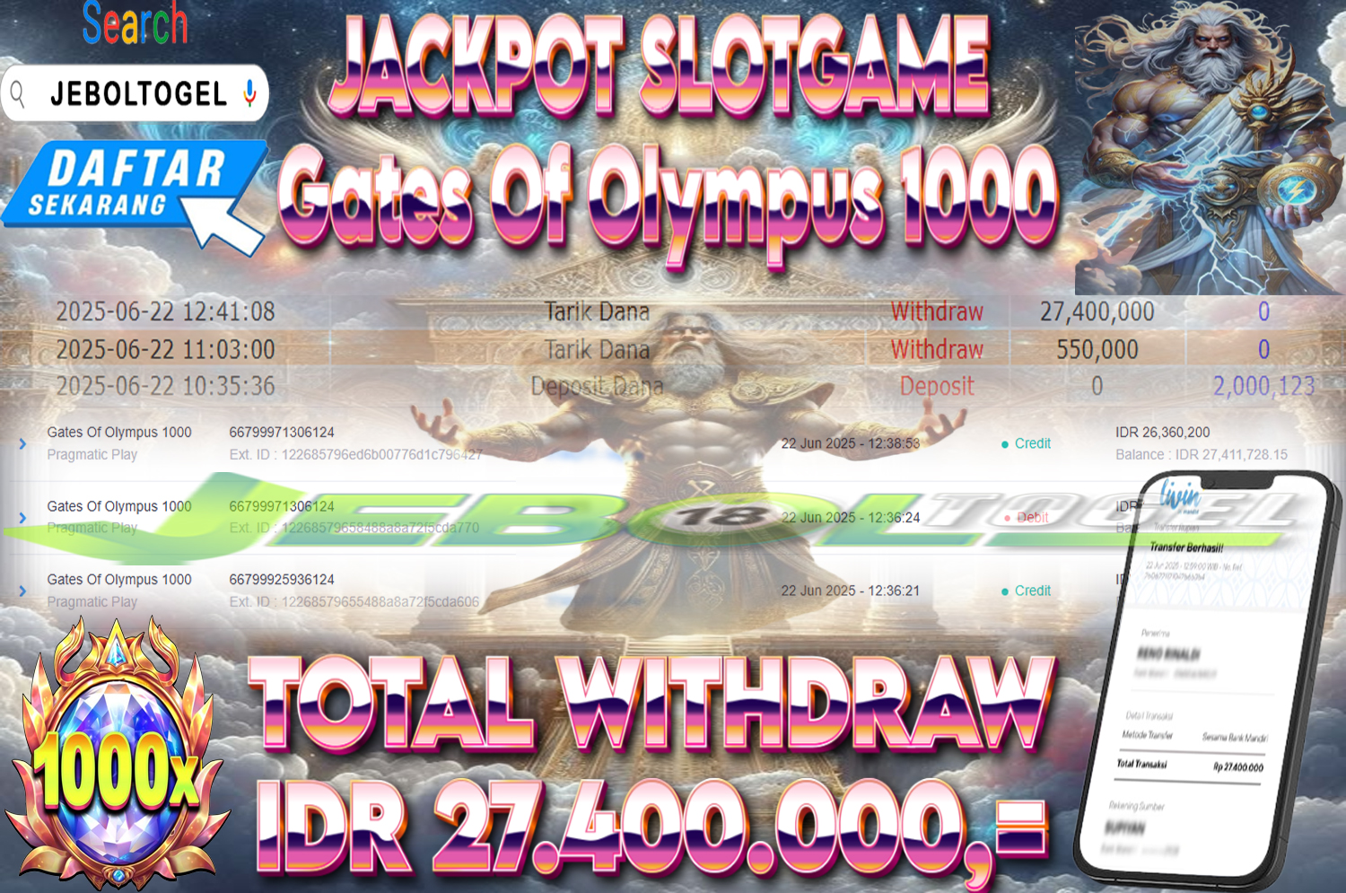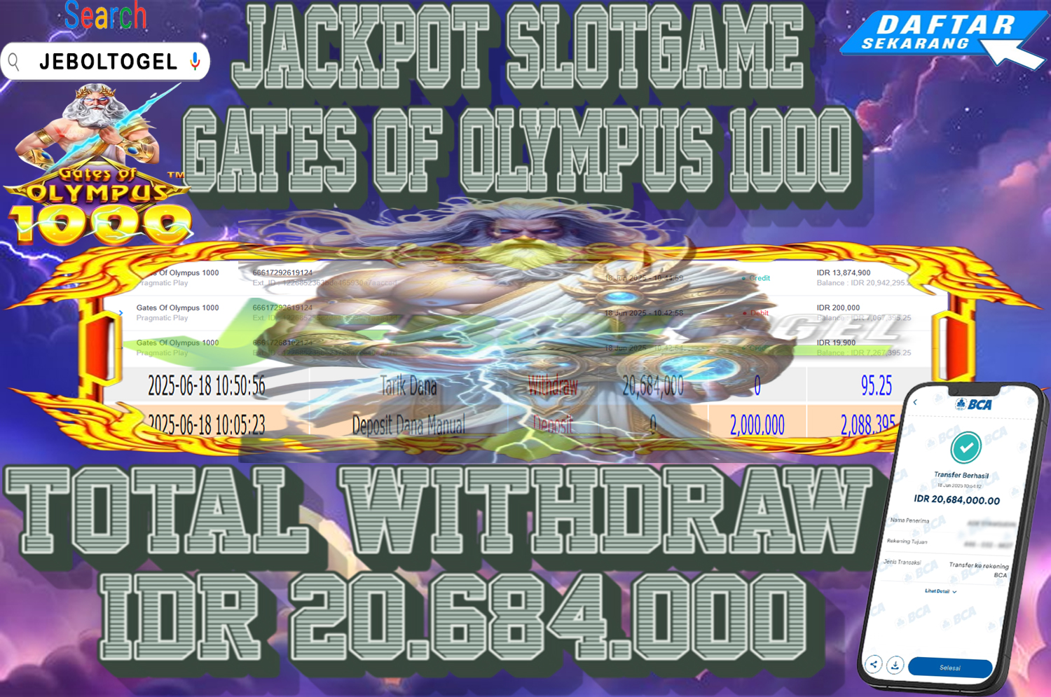 Kemenangan SLOTGAME Gates Of Olympus 1000 ( Pragmatic Play ) Segera bergabung dengan kami JEBOLTOGEL, SITUS TERBESAR dan TERPERCAYA yang pasti BAYAR JP ANDA