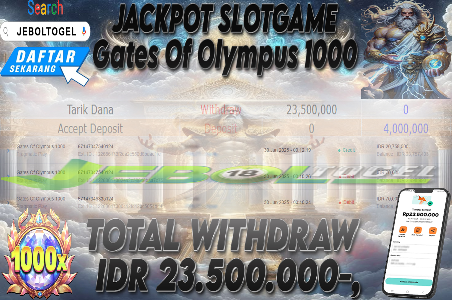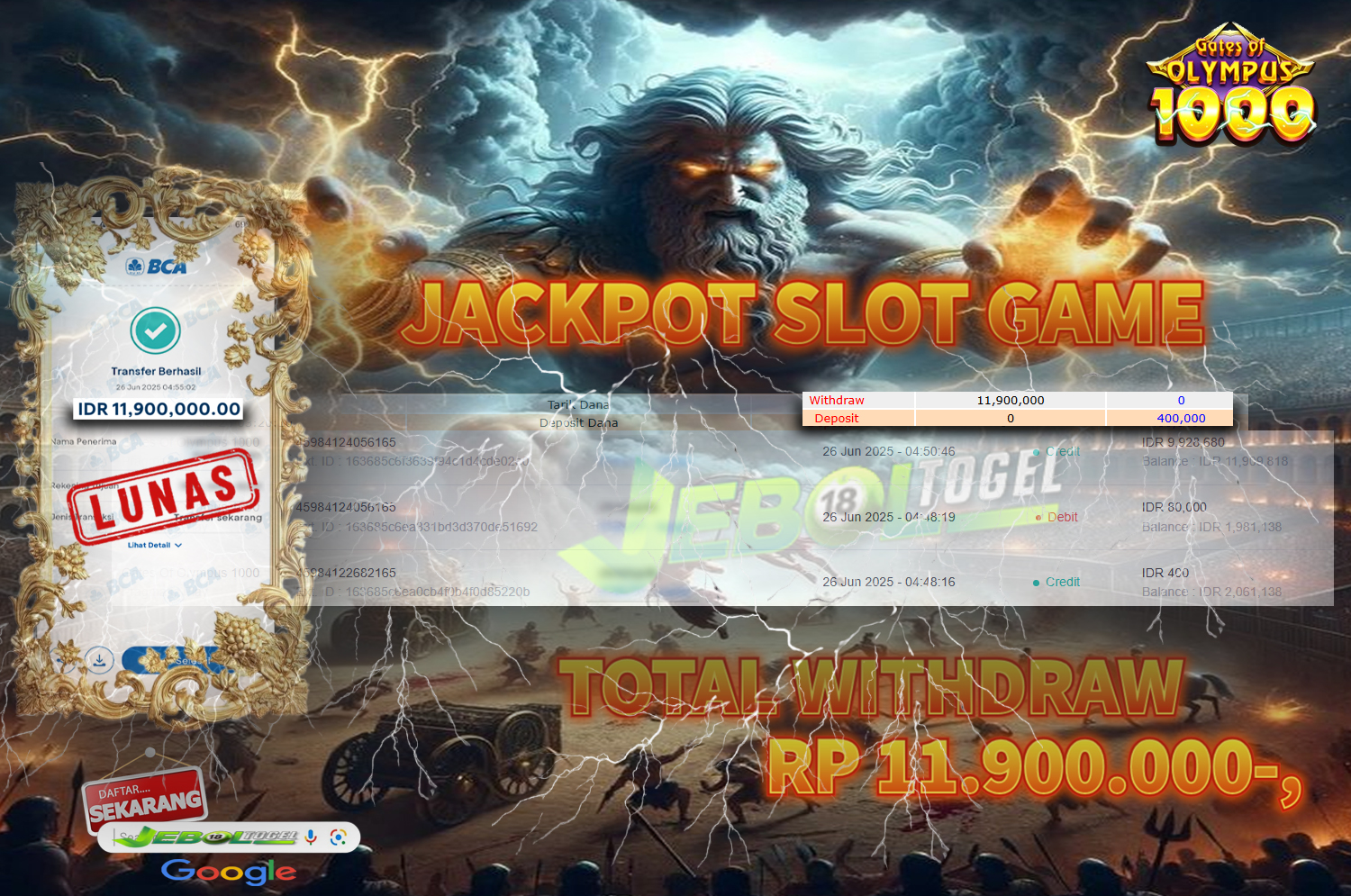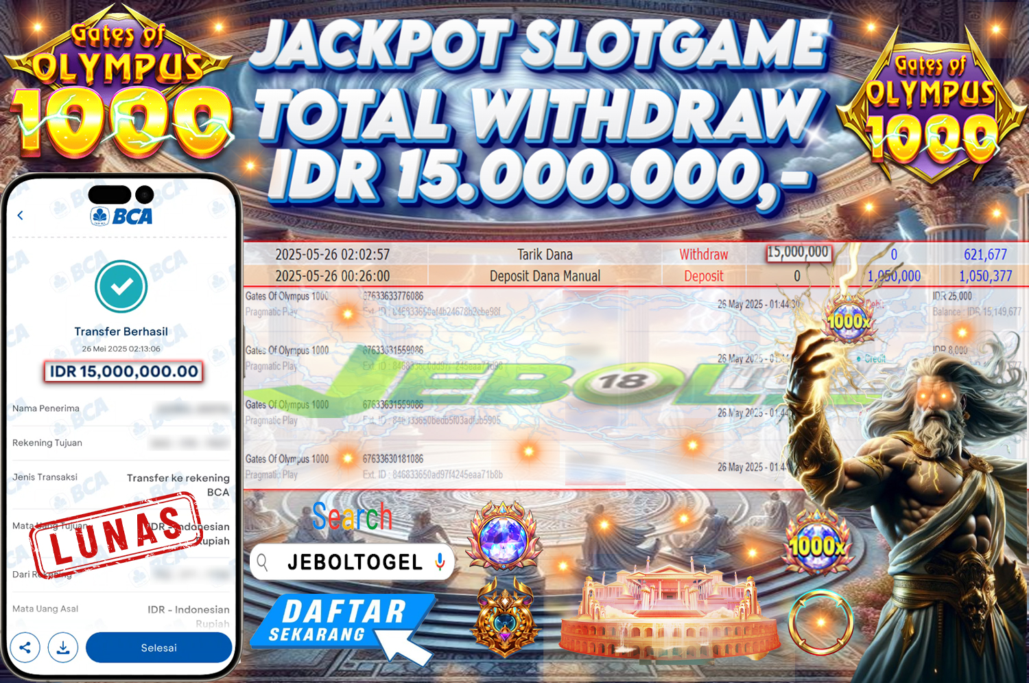 Kemenangan SLOTGAME Gates Of Olympus 1000 ( Pragmatic Play ) Segera bergabung dengan kami JEBOLTOGEL, SITUS TERBESAR dan TERPERCAYA yang pasti BAYAR JP ANDA