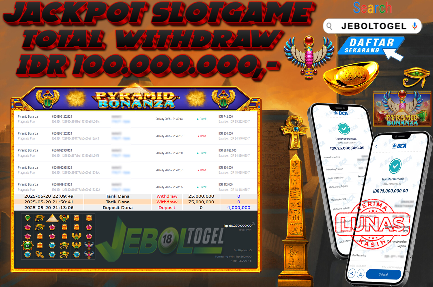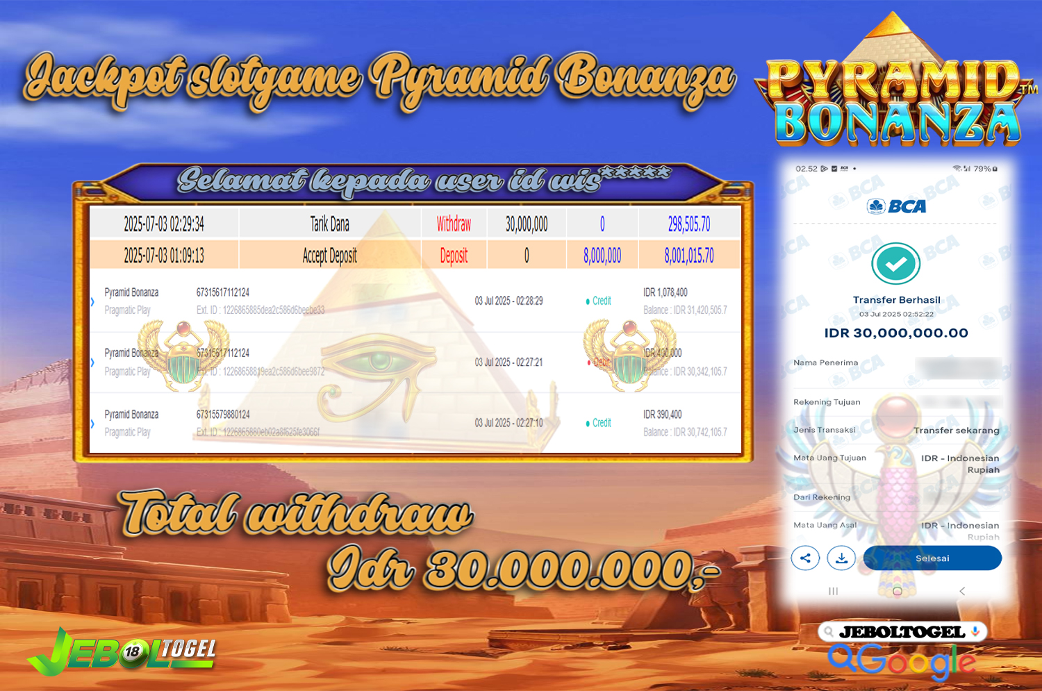 Kemenangan SLOTGAME Pyramid Bonanza ( Pragmatic Play ) Segera bergabung dengan kami JEBOLTOGEL, SITUS TERBESAR dan TERPERCAYA yang pasti BAYAR JP ANDA!