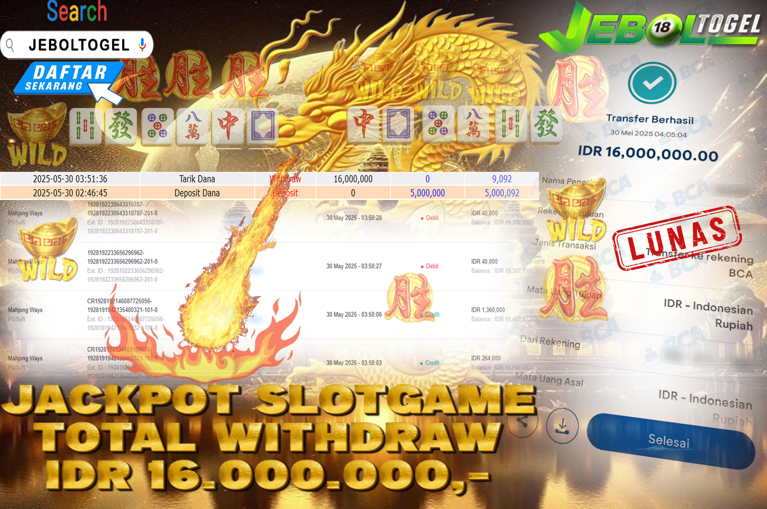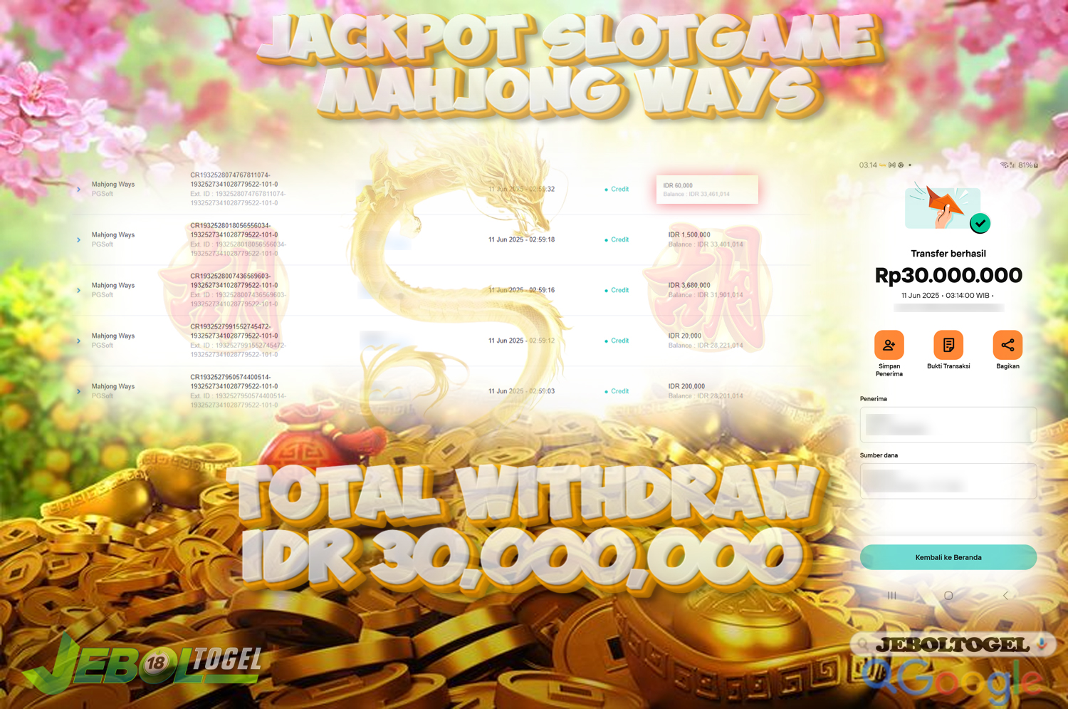 Kemenangan SLOTGAME Mahjong Ways ( PGSoft ) Segera bergabung dengan kami JEBOLTOGEL, SITUS TERBESAR dan TERPERCAYA yang pasti BAYAR JP ANDA