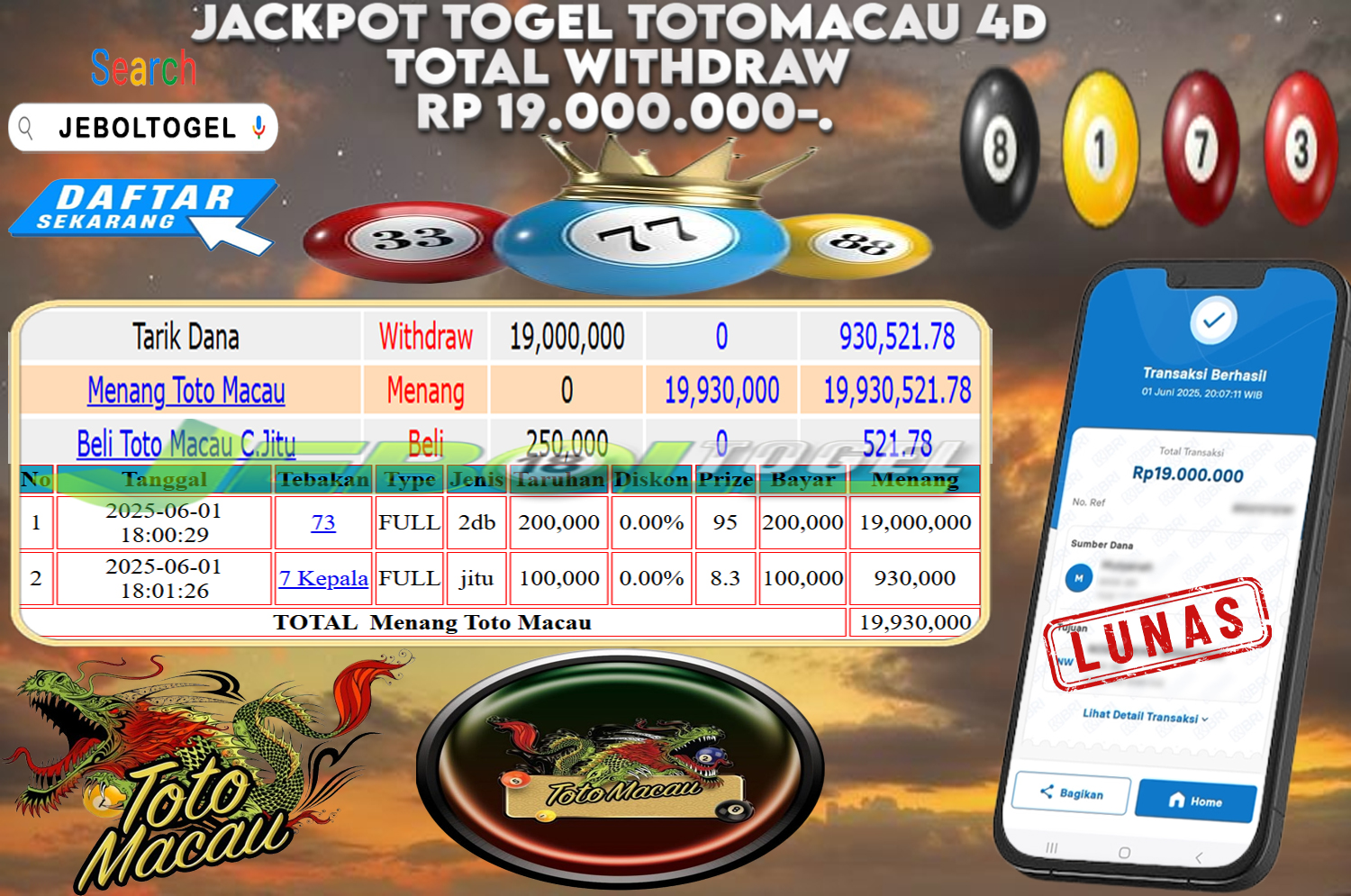 Kemenangan PASARAN TOTOMACAU 4D Segera bergabung dengan kami JEBOLTOGEL, SITUS TERBESAR dan TERPERCAYA yang pasti BAYAR JP ANDA