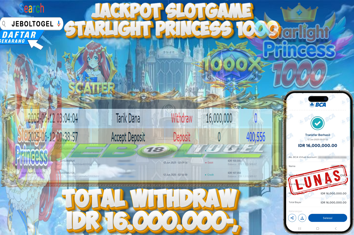 Kemenangan SLOTGAME Starlight Princess 1000 ( Pragmatic Play ) Segera bergabung dengan kami JEBOLTOGEL, SITUS TERBESAR dan TERPERCAYA yang pasti BAYAR JP ANDA