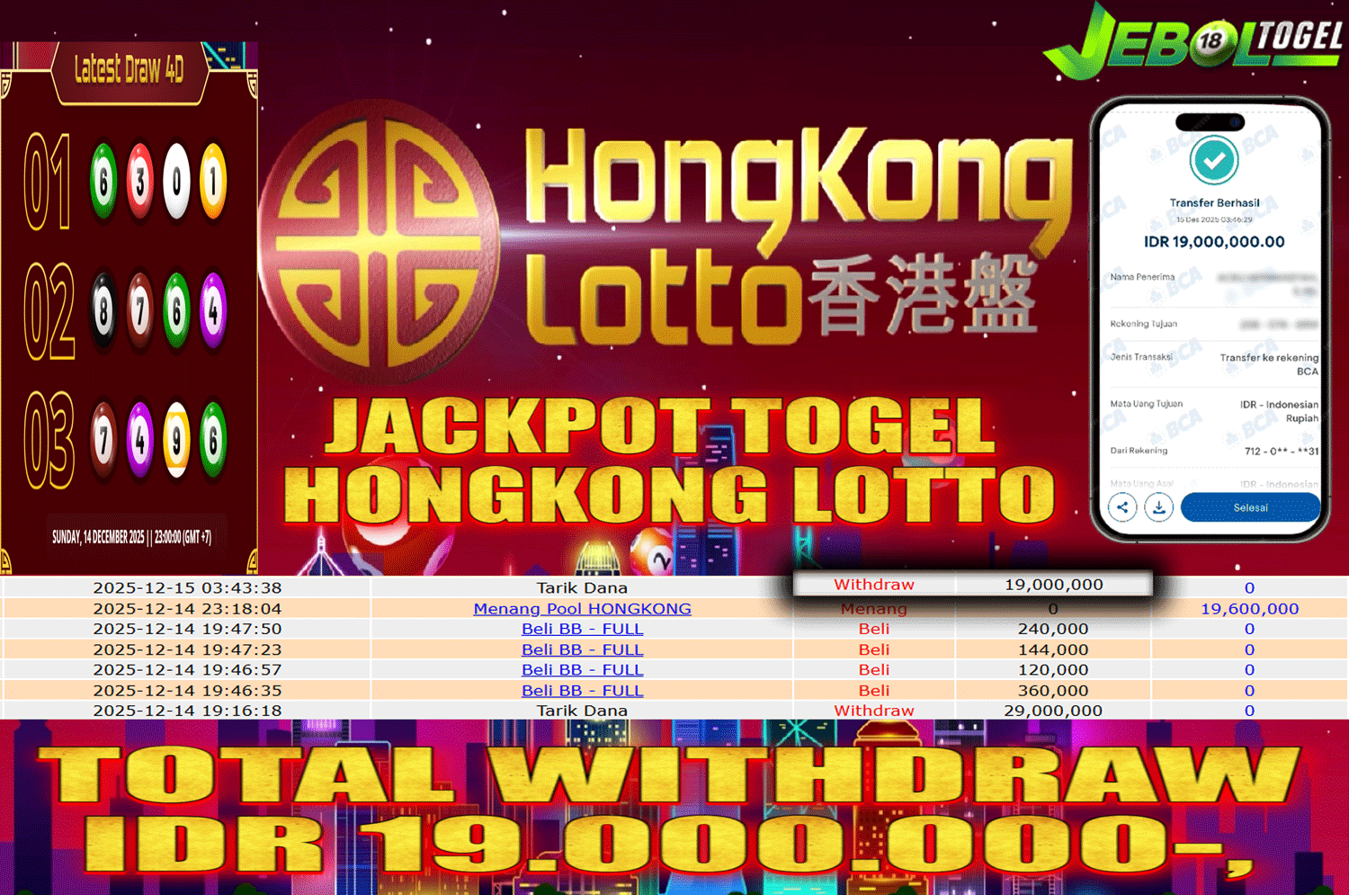 Kemenangan TOGEL Pasaran ( HONGKONG LOTTO ) Segera bergabung dengan kami JEBOLTOGEL, SITUS TERBESAR dan TERPERCAYA yang pasti BAYAR JP ANDA !