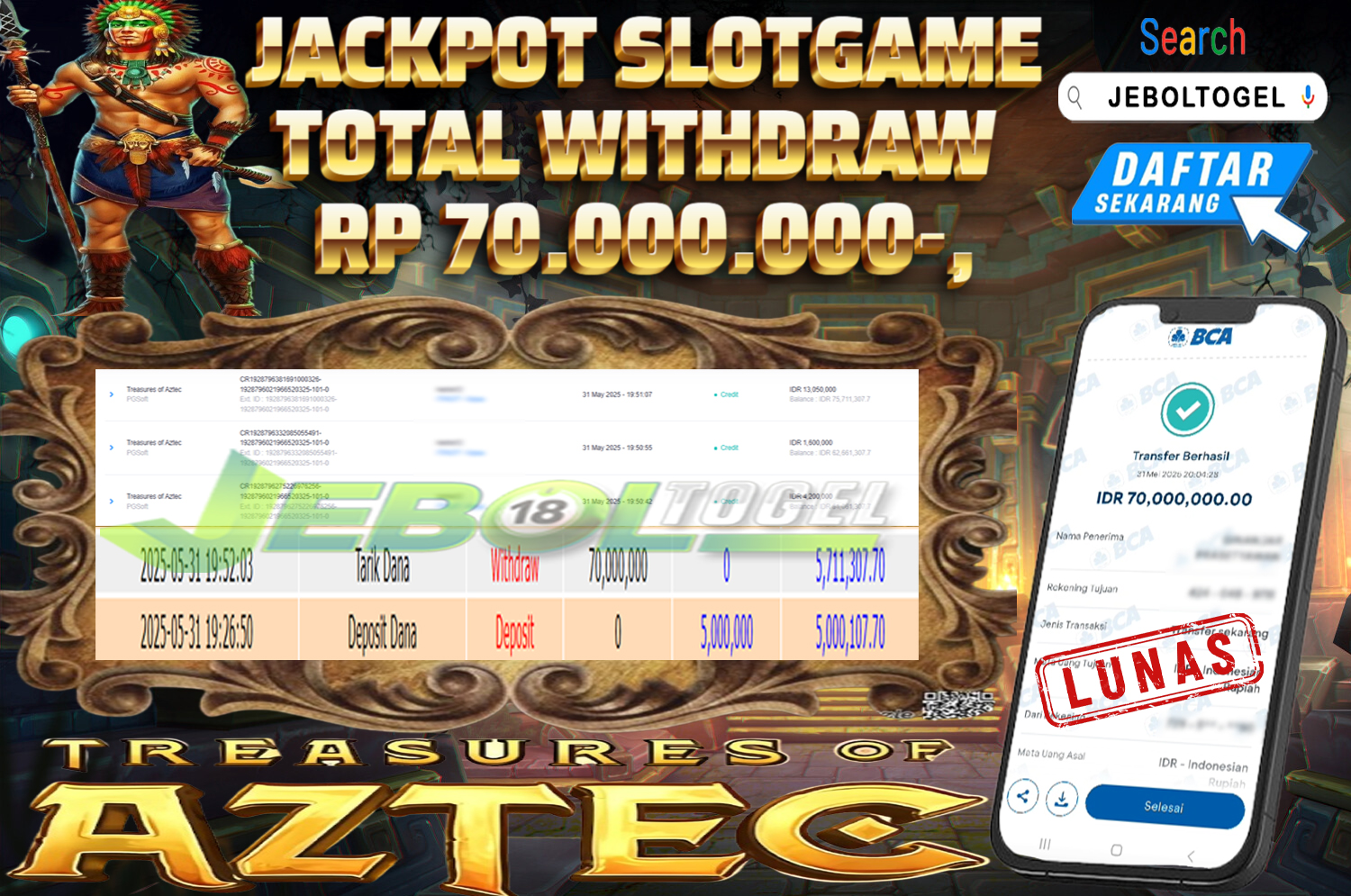 Kemenangan SLOTGAME Treasures of Aztec ( PGSoft ) Segera bergabung dengan kami JEBOLTOGEL, SITUS TERBESAR dan TERPERCAYA yang pasti BAYAR JP ANDA