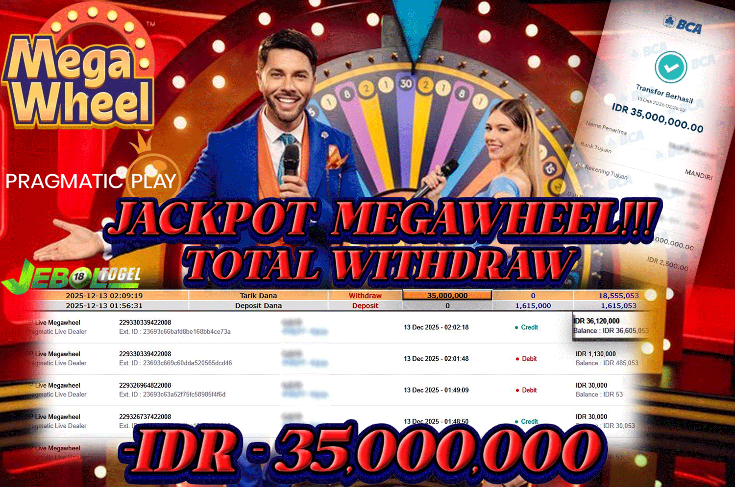 Kemenangan PP Live Megawheel ( Pragmatic Live Dealer ) Segera bergabung dengan kami JEBOLTOGEL, SITUS TERBESAR dan TERPERCAYA yang pasti BAYAR JP ANDA