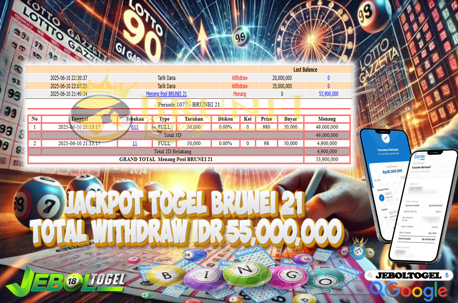 Kemenangan PASARAN BRUNEI 21 , Segera bergabung dengan kami JEBOLTOGEL, SITUS TERBESAR dan TERPERCAYA yang pasti BAYAR JP ANDA