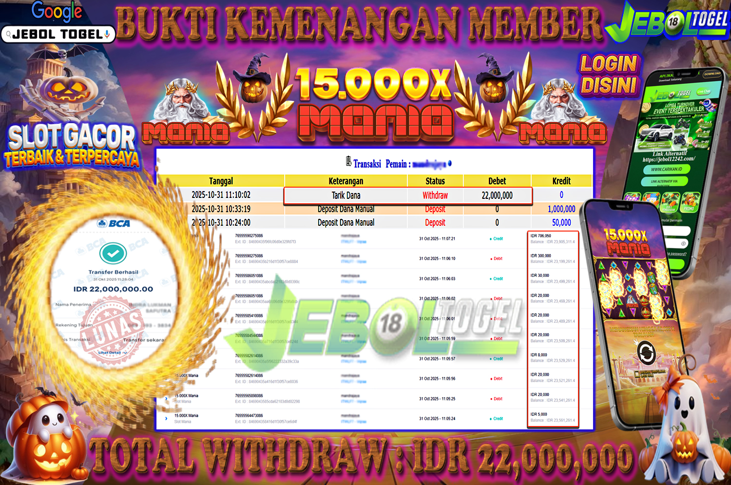 Kemenangan SLOTGAME 15.000X Mania ( Slot Mania ) Segera bergabung dengan kami JEBOLTOGEL, SITUS TERBESAR dan TERPERCAYA yang pasti BAYAR JP ANDA!