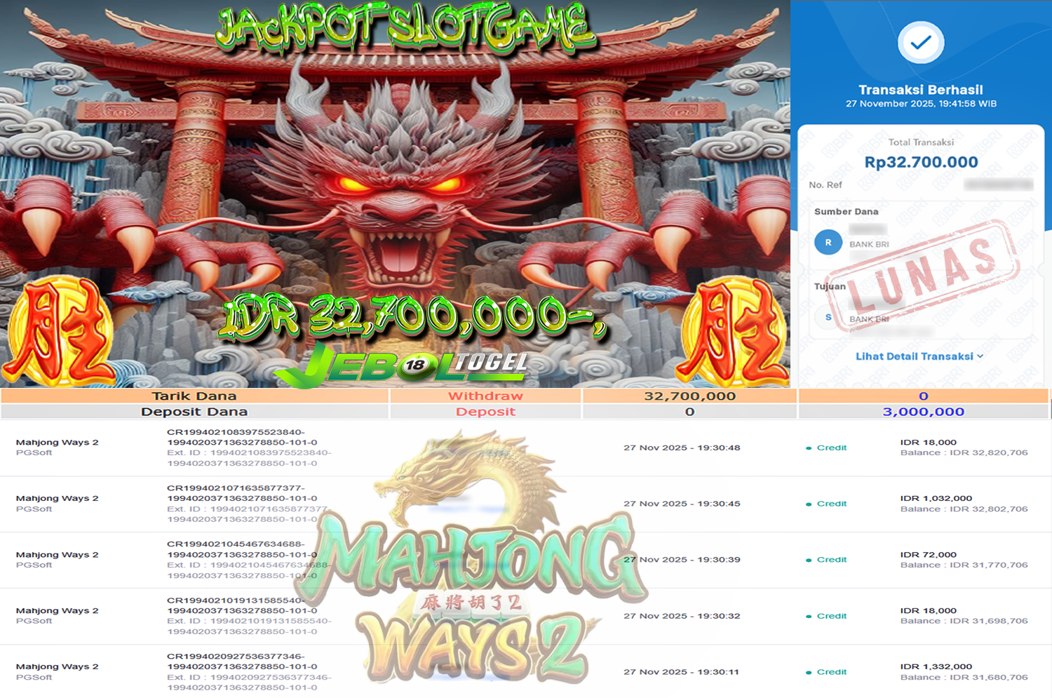 BUKTI JP ( 27 NOVEMBER 2025 ) LUNAS RP 32,700,000