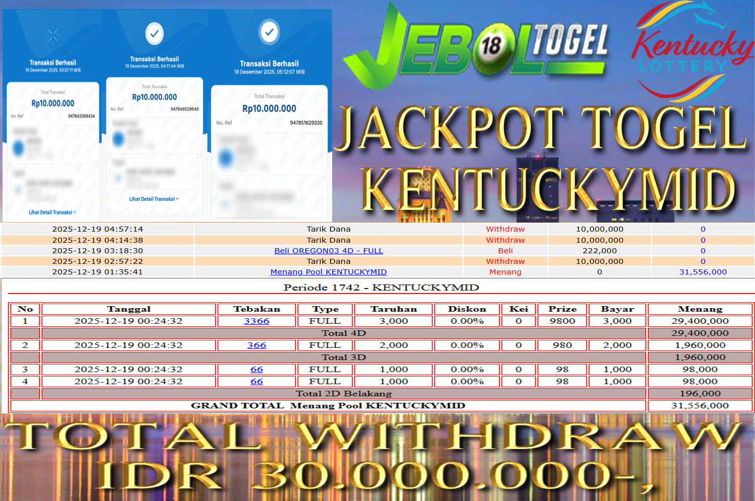 Kemenangan TOGEL Pasaran ( KENTUCKYMID POOL ) Segera bergabung dengan kami JEBOLTOGEL, SITUS TERBESAR dan TERPERCAYA yang pasti BAYAR JP ANDA !
