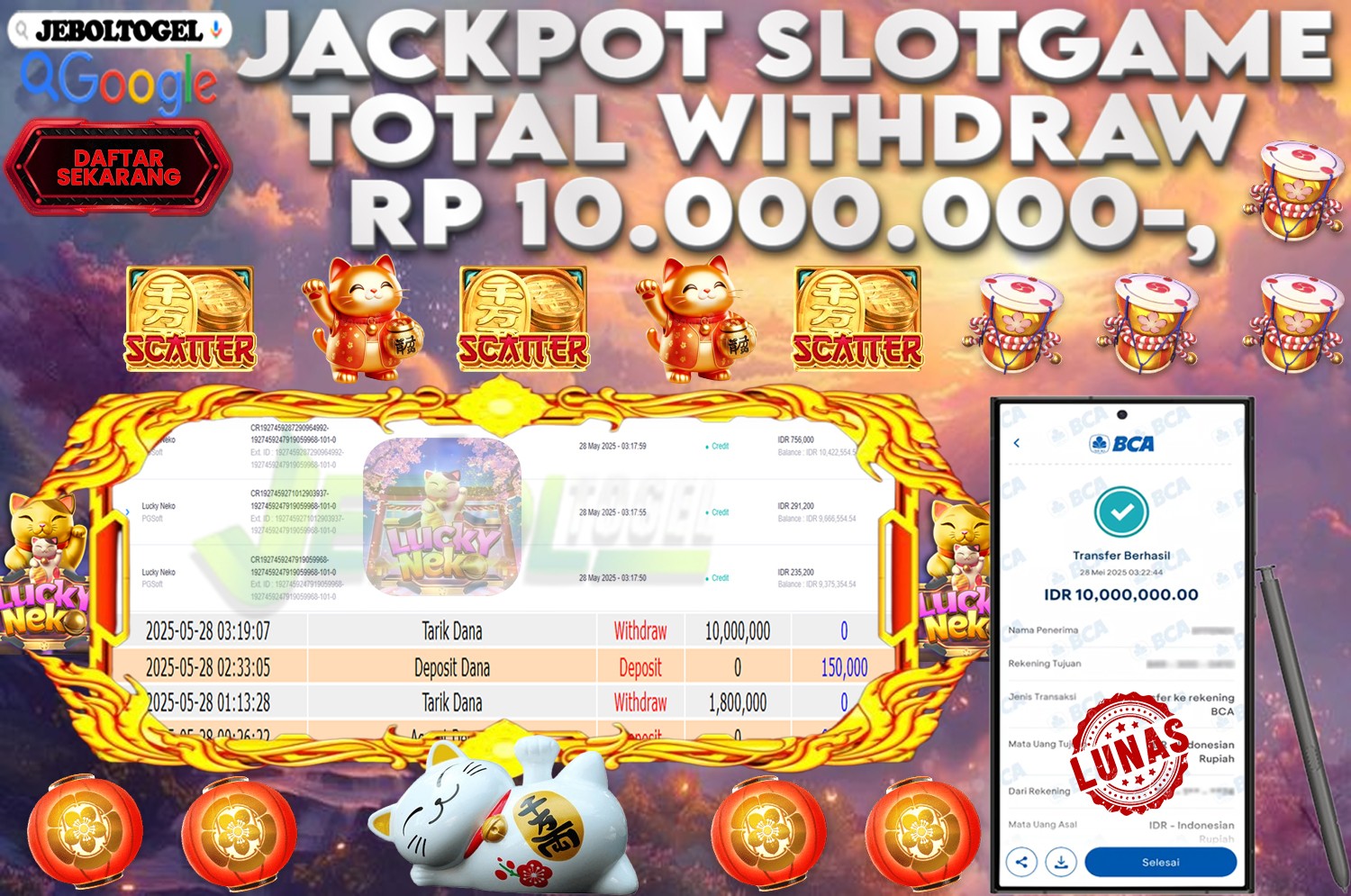 Kemenangan SLOTGAME Lucky Neko ( PGSoft ) Segera bergabung dengan kami JEBOLTOGEL, SITUS TERBESAR dan TERPERCAYA yang pasti BAYAR JP ANDA