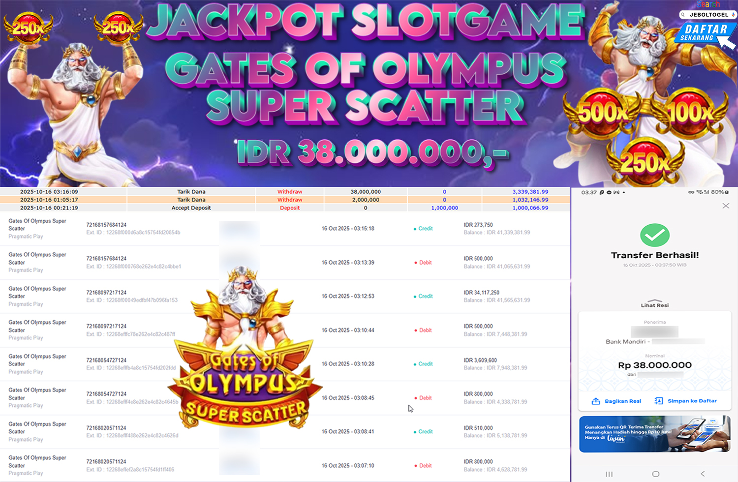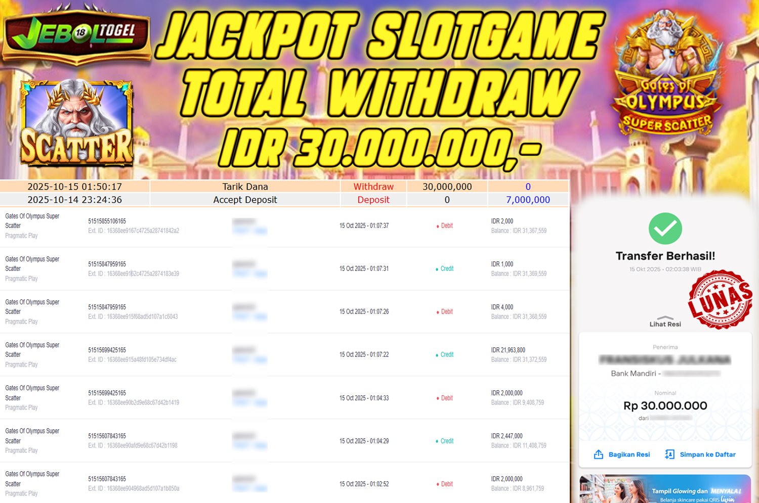 Kemenangan SLOTGAME Gates Of Olympus Super Scatter ( Pragmatic Play ) Segera bergabung dengan kami JEBOLTOGEL, SITUS TERBESAR dan TERPERCAYA yang pasti BAYAR JP ANDA!