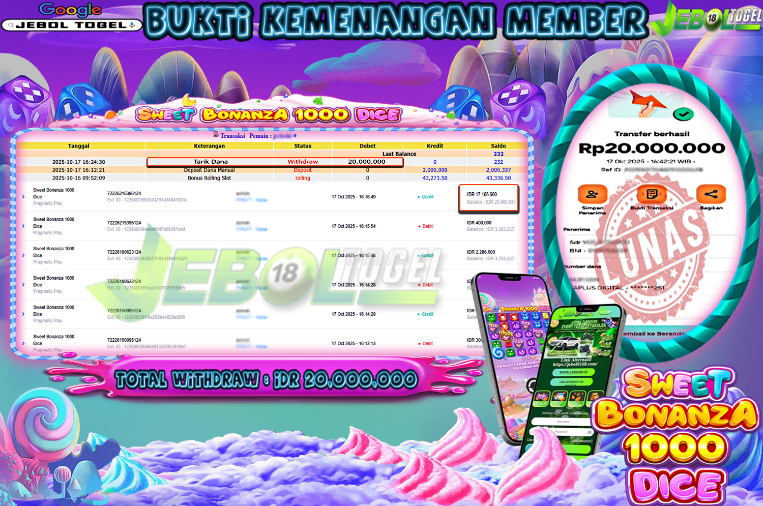 Kemenangan SLOTGAME Sweet Bonanza 1000 Dice ( Pragmatic Play ) Segera bergabung dengan kami JEBOLTOGEL, SITUS TERBESAR dan TERPERCAYA yang pasti BAYAR JP ANDA!
