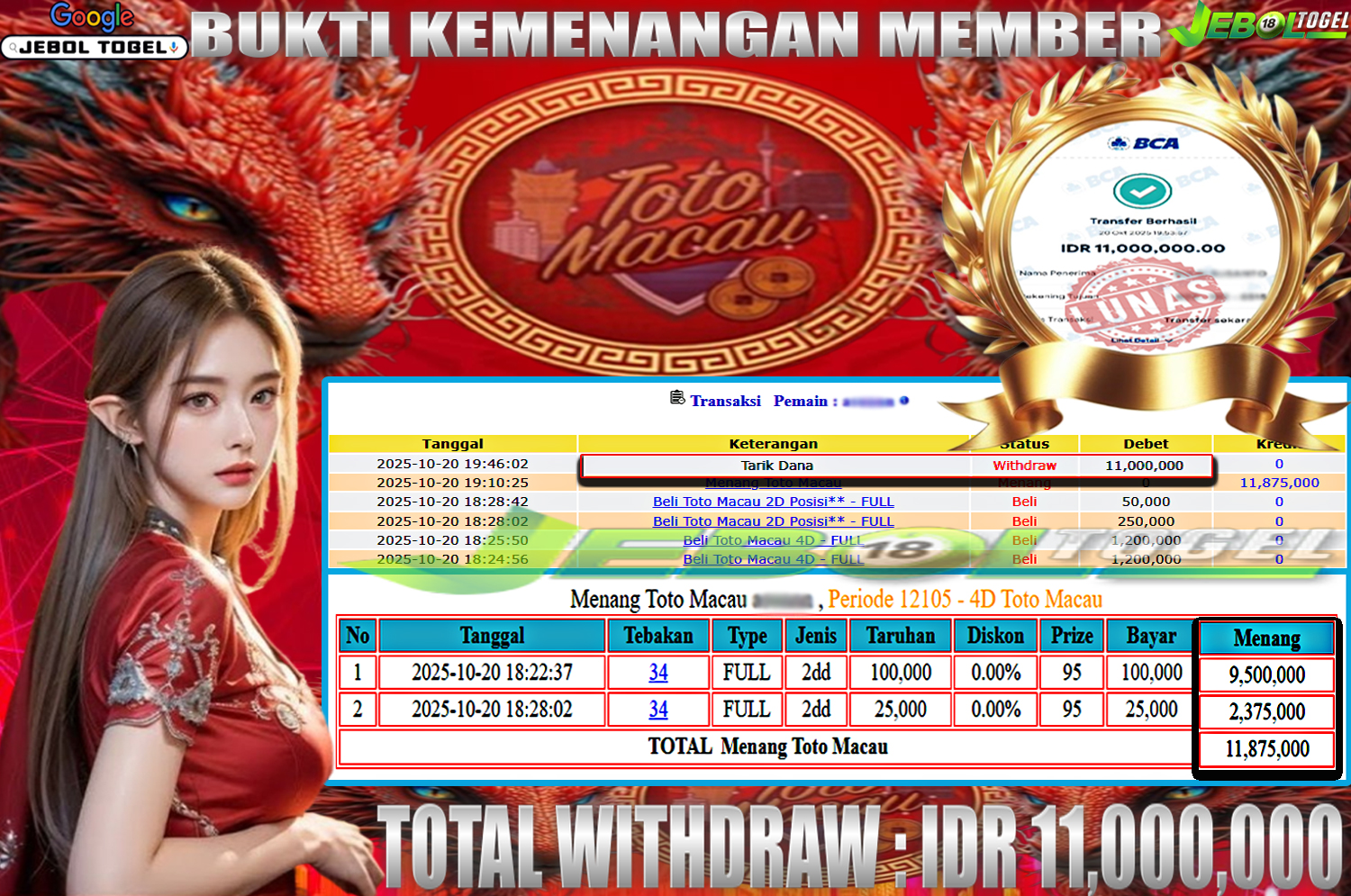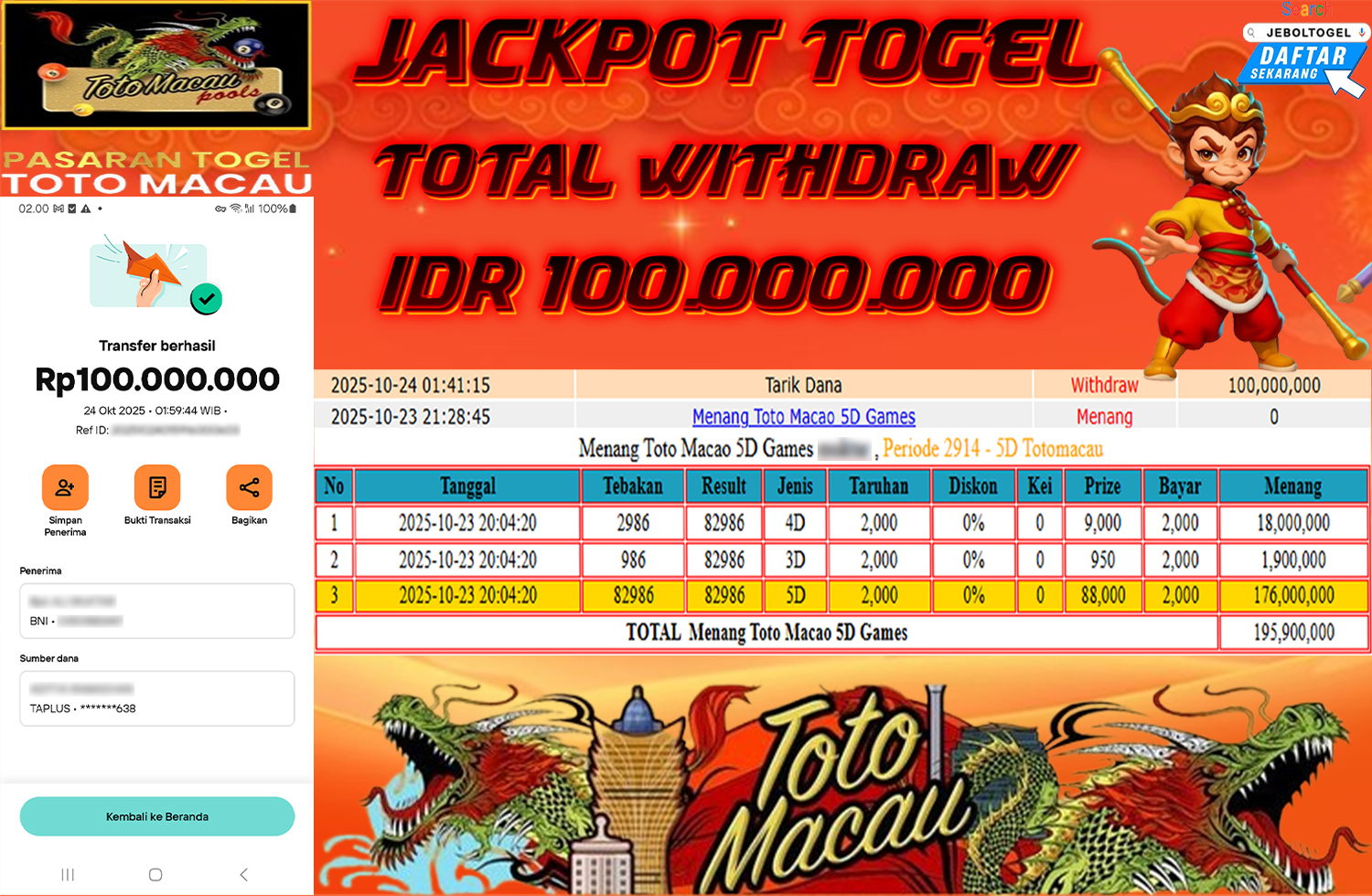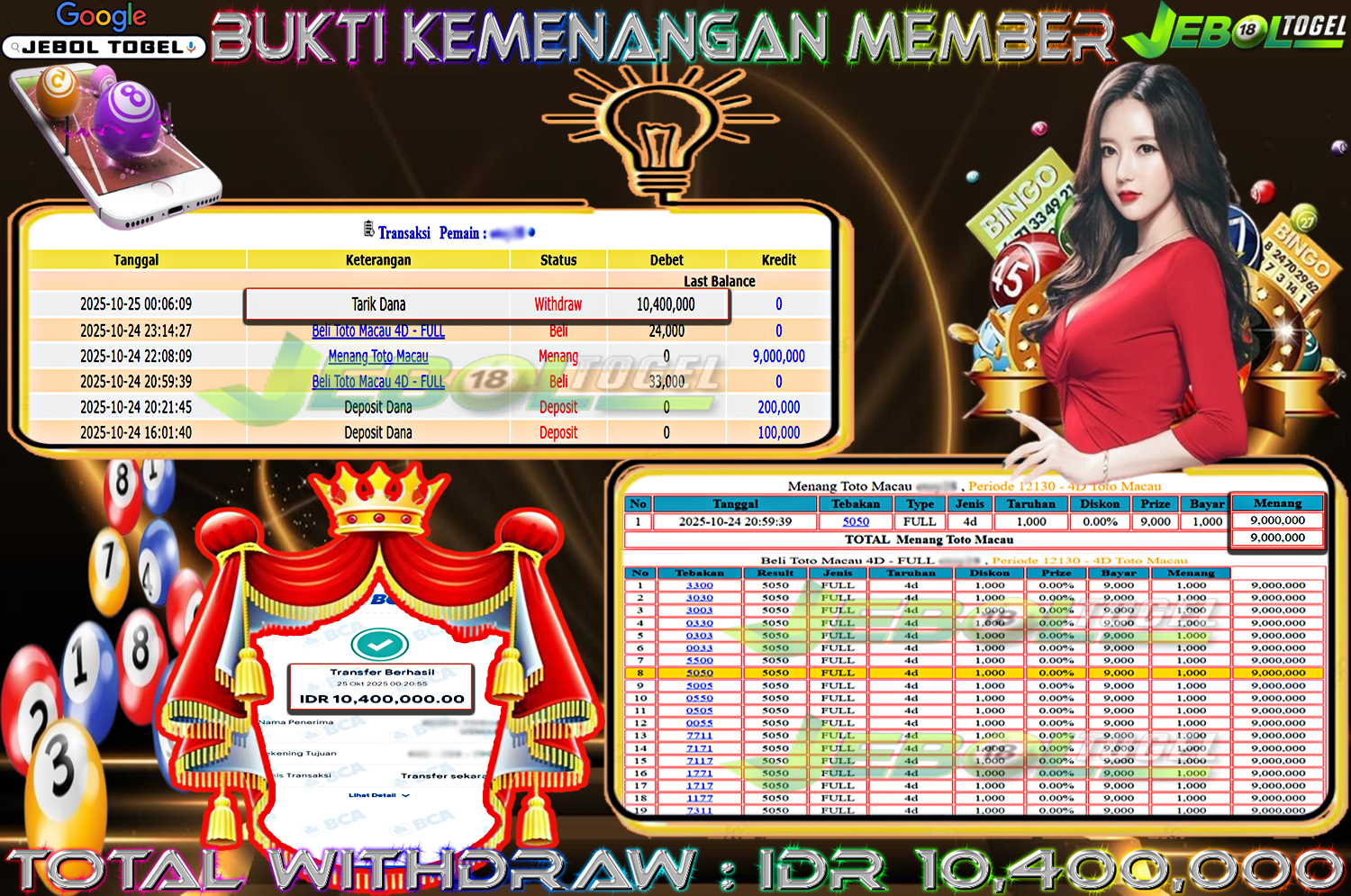 Kemenangan TOGEL Pasaran ( 4D TOTO MACAU ) Segera bergabung dengan kami JEBOLTOGEL, SITUS TERBESAR dan TERPERCAYA yang pasti BAYAR JP ANDA!