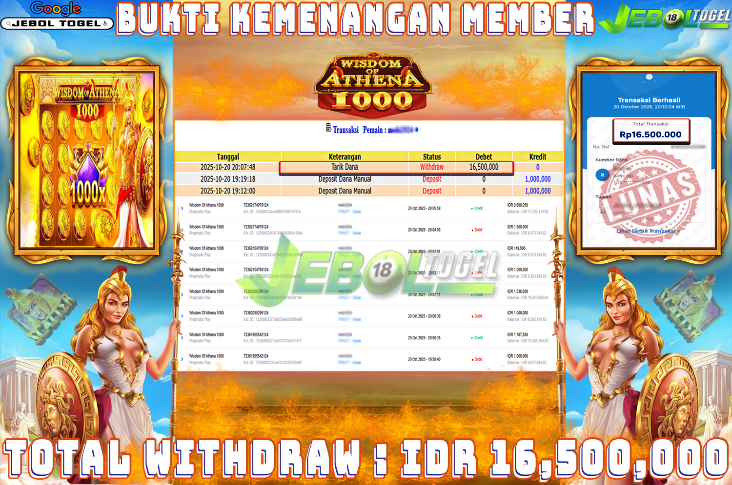 Kemenangan SLOTGAME Wisdom Of Athena 1000 ( Pragmatic Play ) Segera bergabung dengan kami JEBOLTOGEL, SITUS TERBESAR dan TERPERCAYA yang pasti BAYAR JP ANDA!