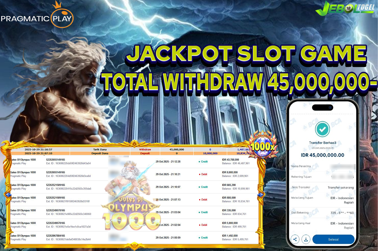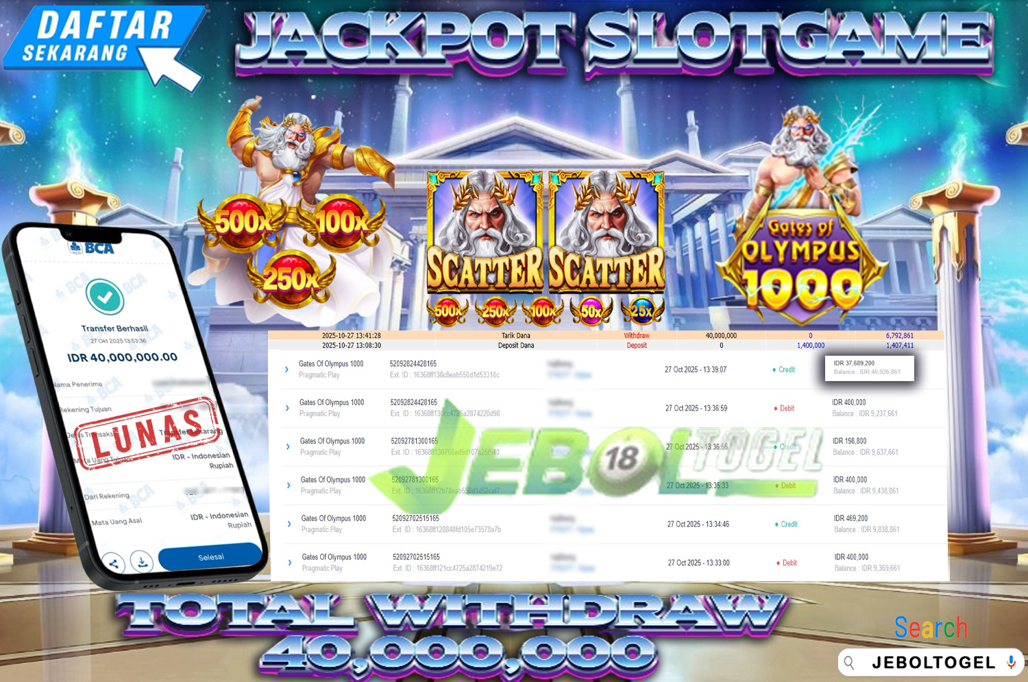 Kemenangan SLOTGAME Gates Of Olympus ( Pragmatic Play ) Segera bergabung dengan kami JEBOLTOGEL, SITUS TERBESAR dan TERPERCAYA yang pasti BAYAR JP ANDA!