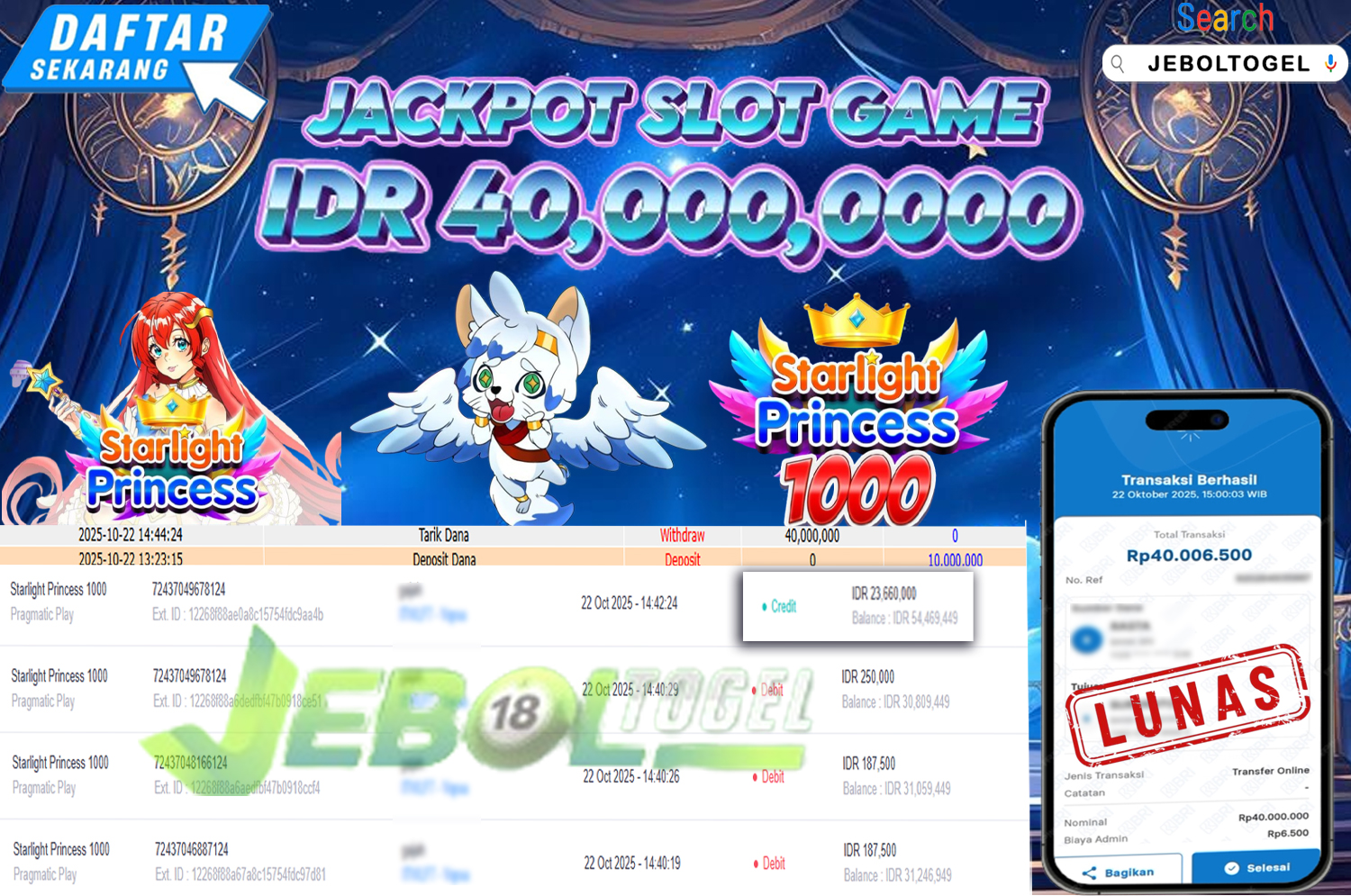 Kemenangan SLOTGAME Starlight Princess 1000 ( Pragmatic Play ) Segera bergabung dengan kami JEBOLTOGEL, SITUS TERBESAR dan TERPERCAYA yang pasti BAYAR JP ANDA!