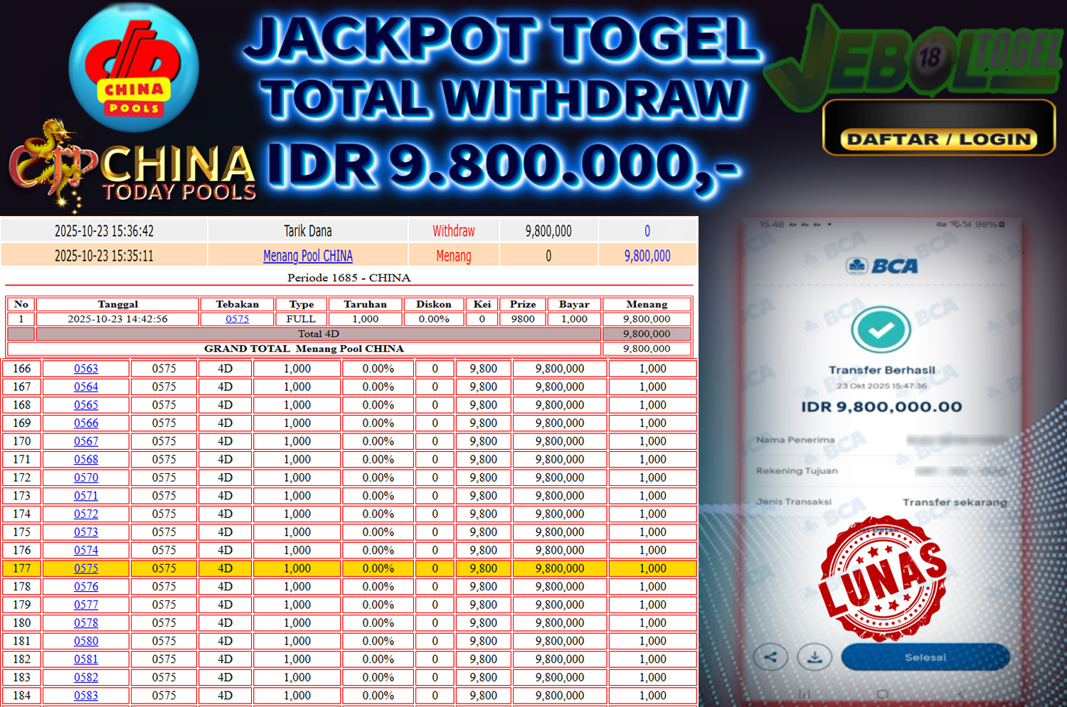 Kemenangan TOGEL Pasaran ( CHINA ) Segera bergabung dengan kami JEBOLTOGEL, SITUS TERBESAR dan TERPERCAYA yang pasti BAYAR JP ANDA!