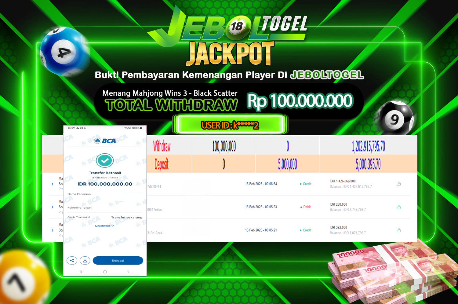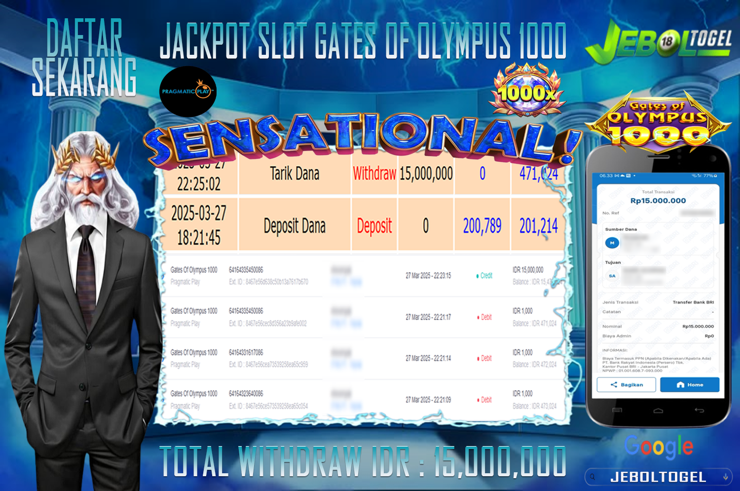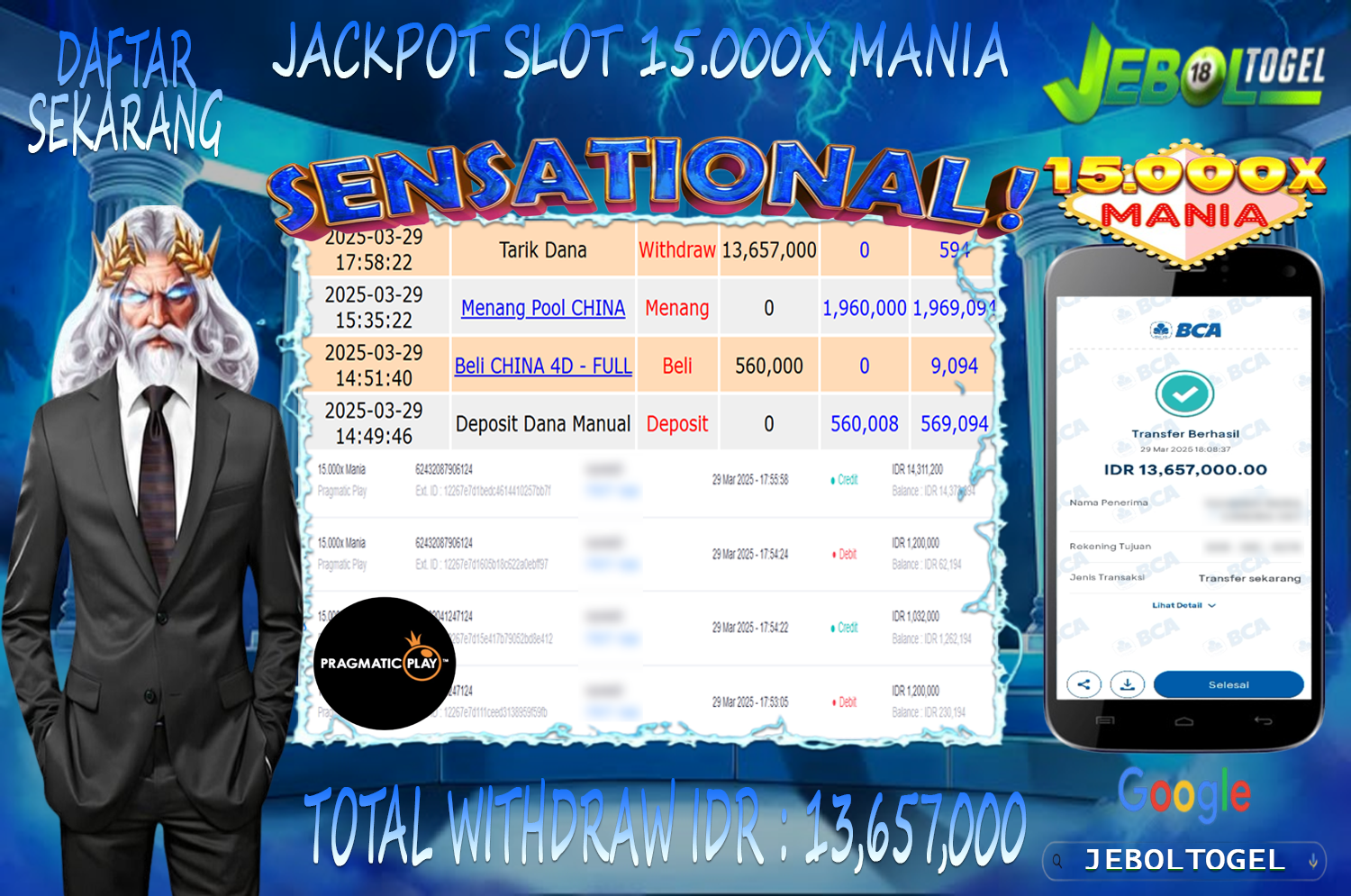 Kemenangan SLOTGAME 15.000x Mania ( Pragmatic Play ) Segera bergabung dengan kami JEBOLTOGEL, SITUS TERBESAR dan TERPERCAYA yang pasti BAYAR JP ANDA